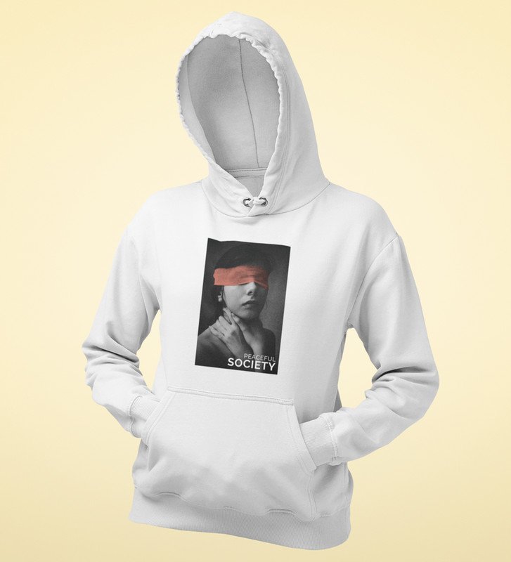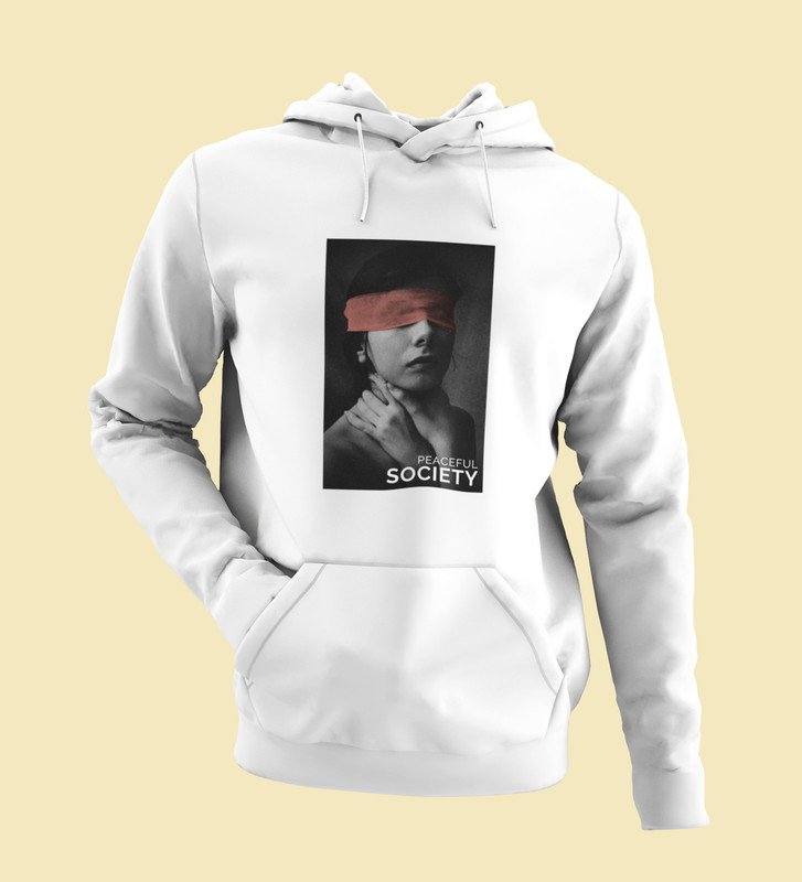 Conquered, Street Artistry:White Trendy Front Graphic Oversized Hoodie - Men's Edition