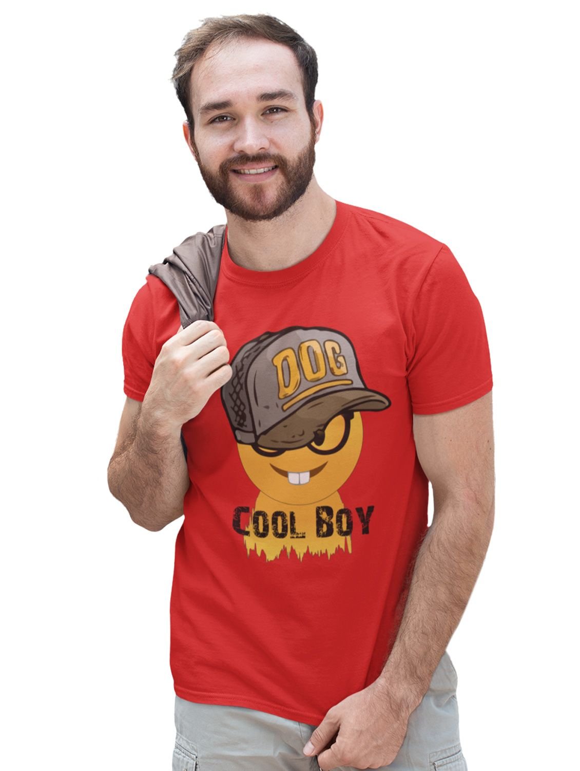 Cool Boy with Two Rabbit Teeth Emoji T-shirt (Red) - Clothes for Emoji Lovers - Foremost Gifting Material for Your Friends and Close Ones