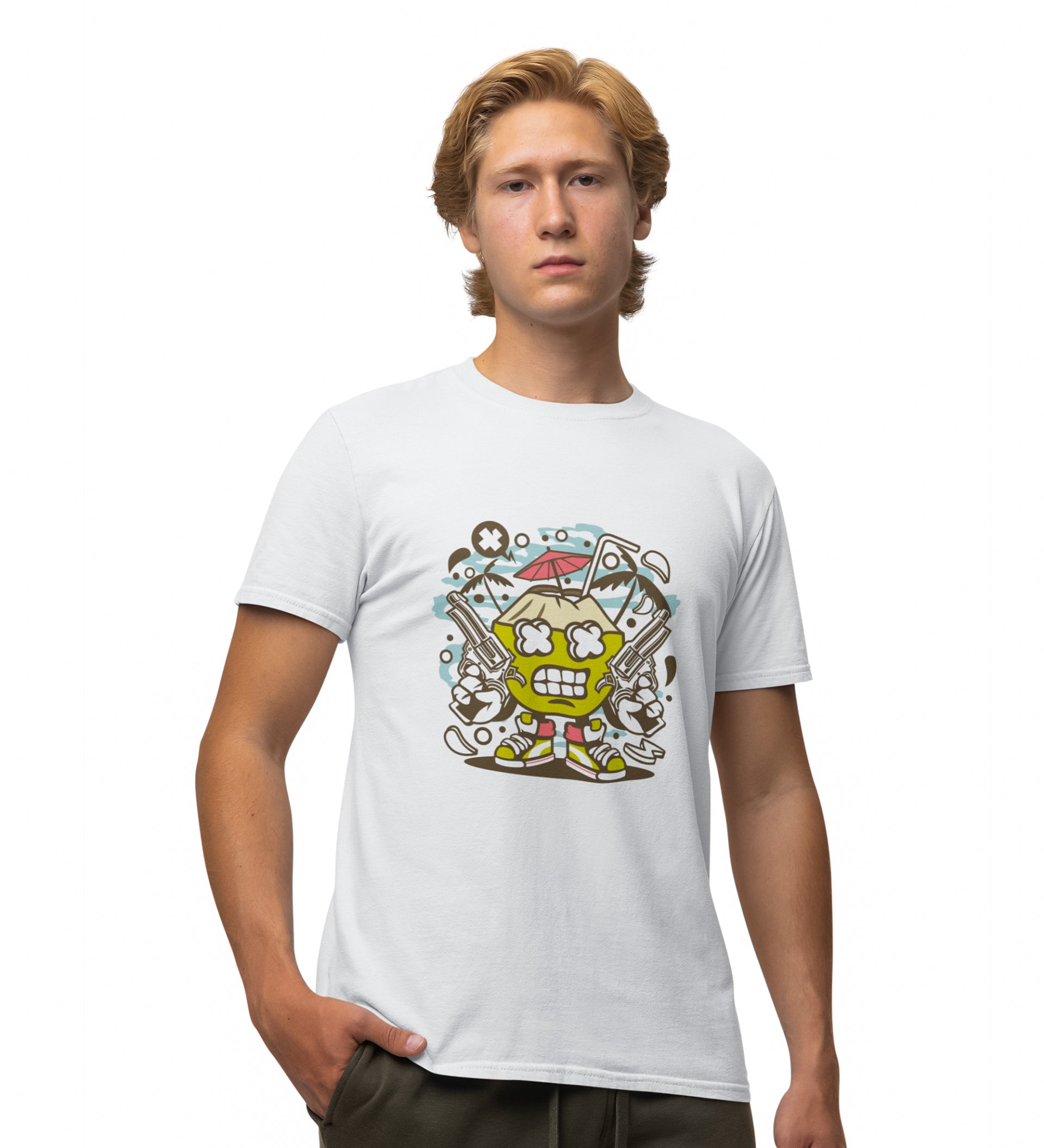 Rebel Coconut White Round Neck Cotton Half Sleeved Men's T-Shirt with Printed Graphics