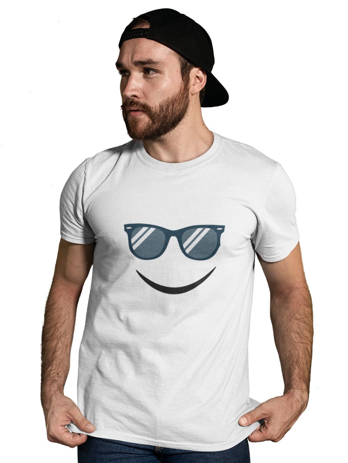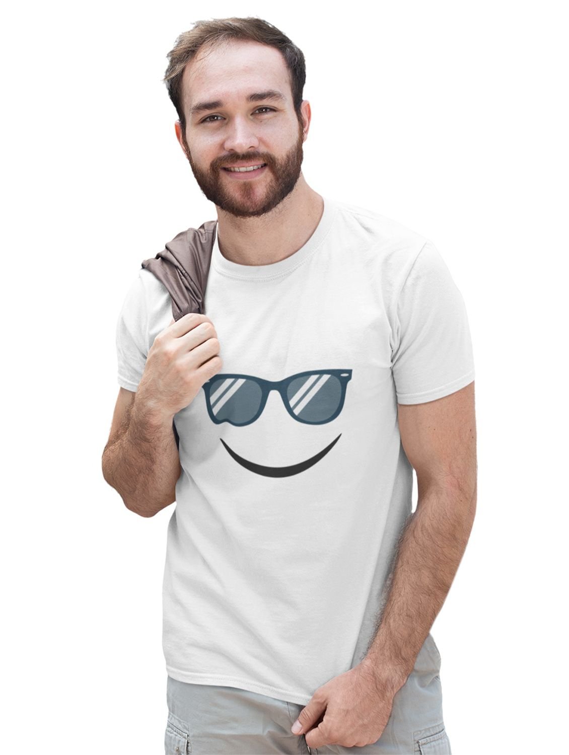 Cool Glasses, Frecky Smile Emoji T-shirt (White) -Foremost Gifting Material for Your Friends and Close Ones
