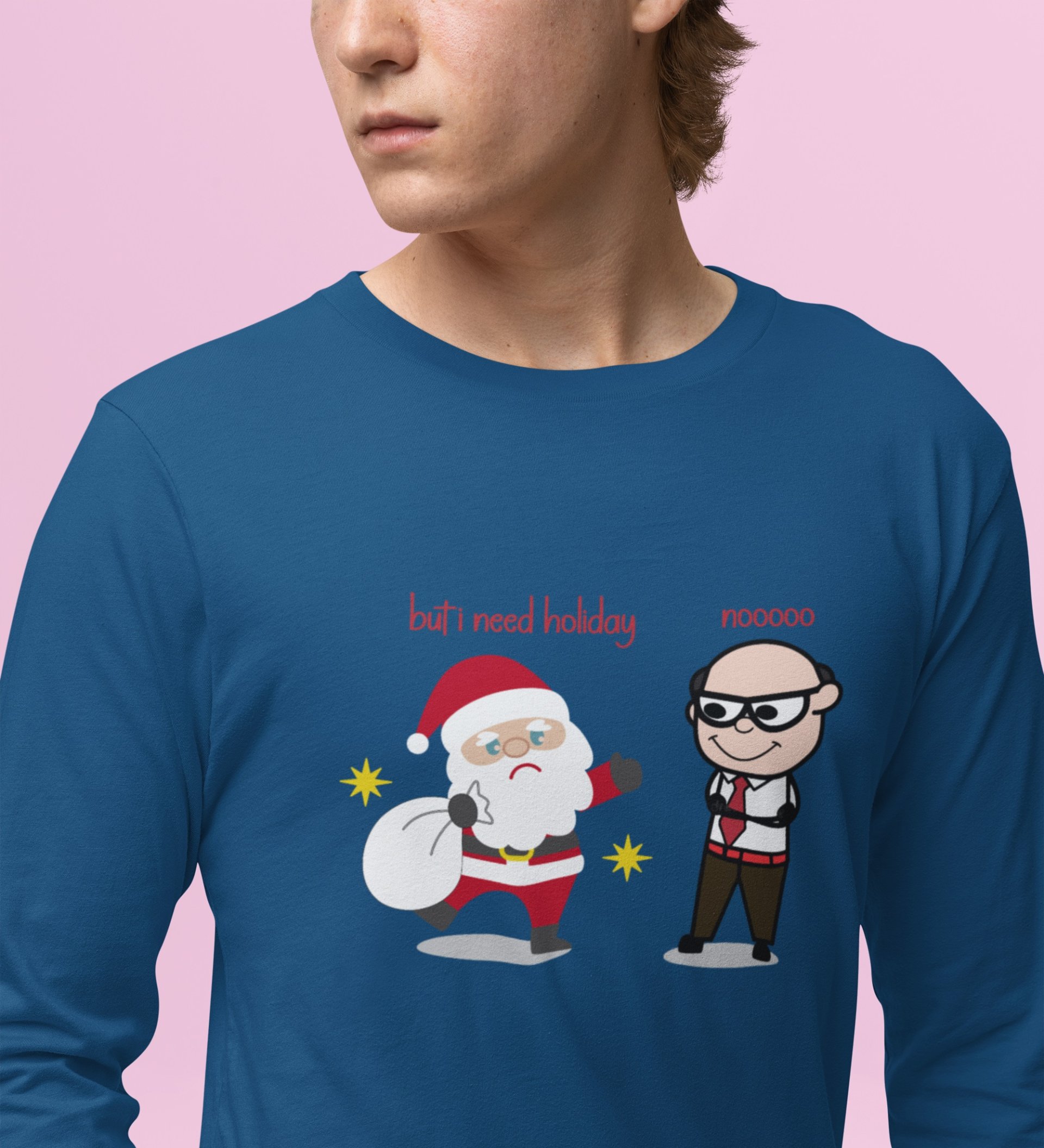 Corporate Santa: Funny DesignedFull Sleeve T-shirt Blue Best Gift For Secret Santa