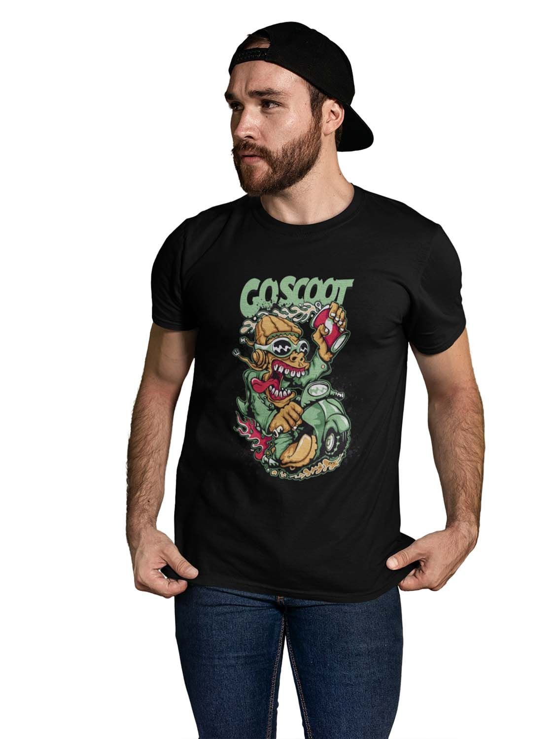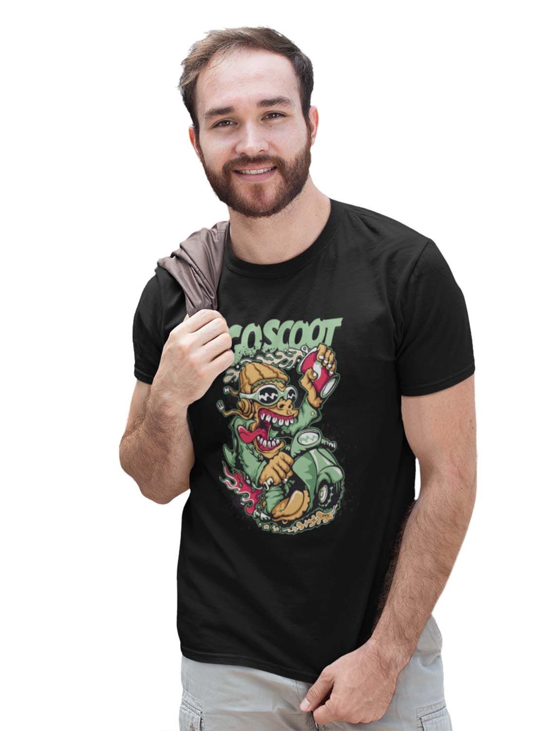 Coscoot Black Round Neck Cotton Half Sleeved T-Shirt with Printed Graphics
