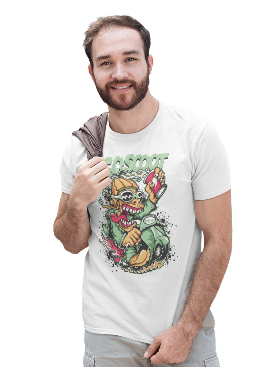 Coscoot White Round Neck Cotton Half Sleeved T-Shirt with Printed Graphics