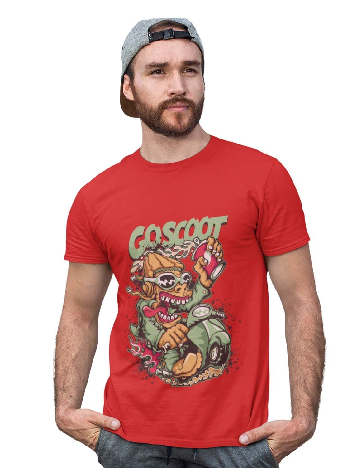 Coscoot Red Round Neck Cotton Half Sleeved T-Shirt with Printed Graphics