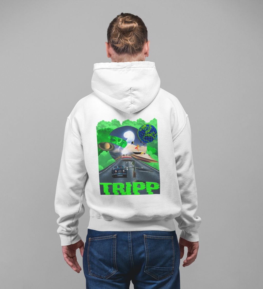 Cosmic Vibes Tripp White Cotton Printed Hoodies For Men
