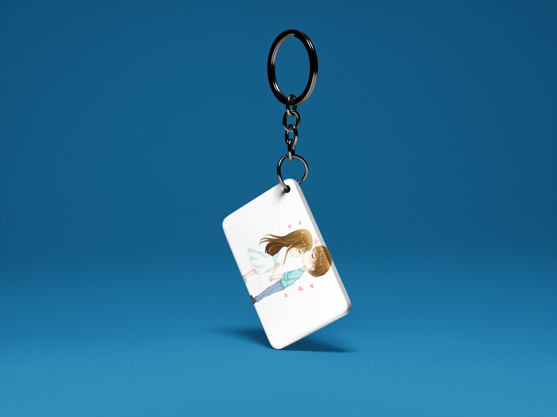 Couple Animation-Forehead kiss-White -Valentine's Special Keychains(Pack Of 2)