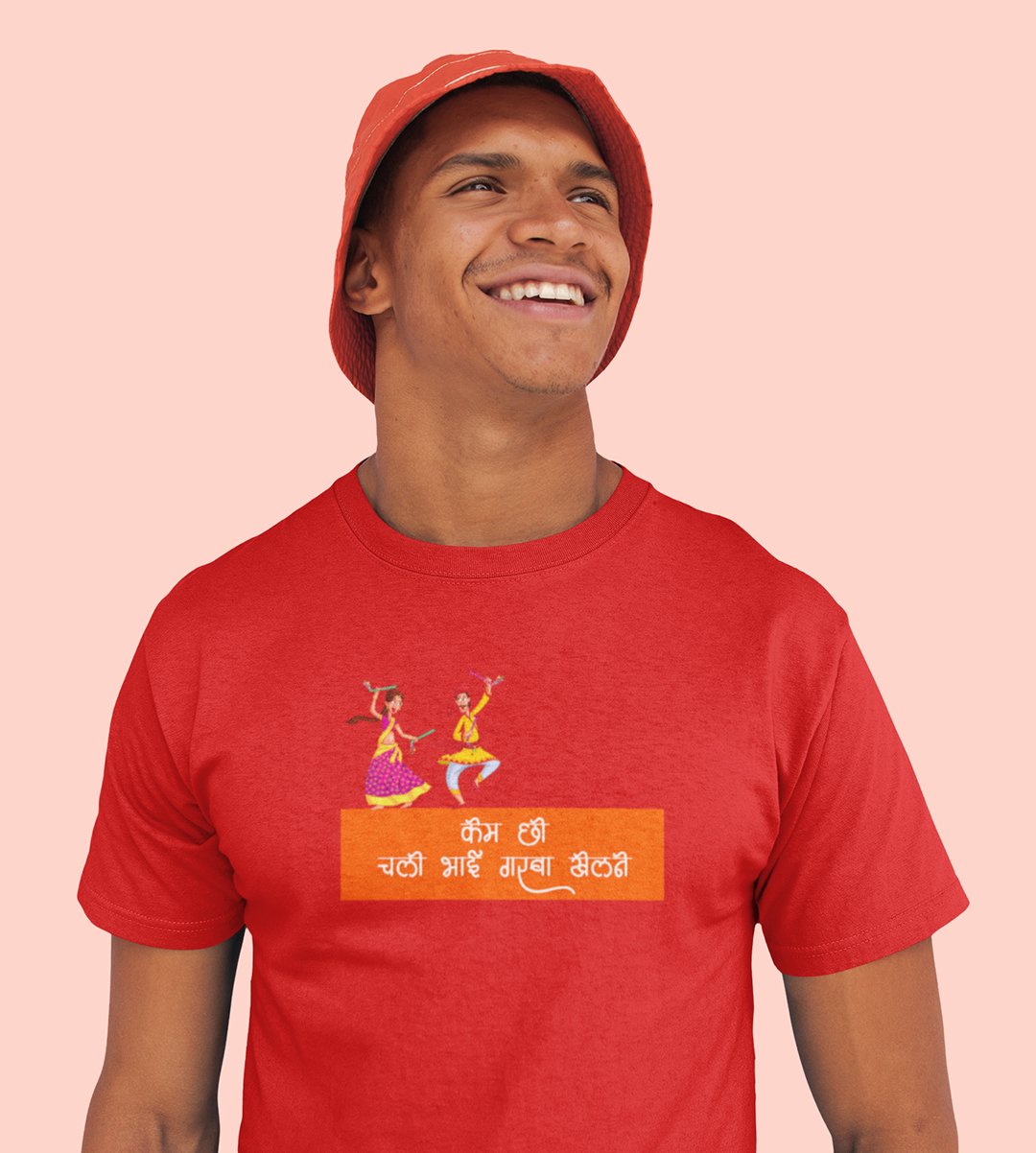 Couple dance printed unisex adults round neck cotton half-sleeve red tshirt specially for Navratri festival/ Durga puja