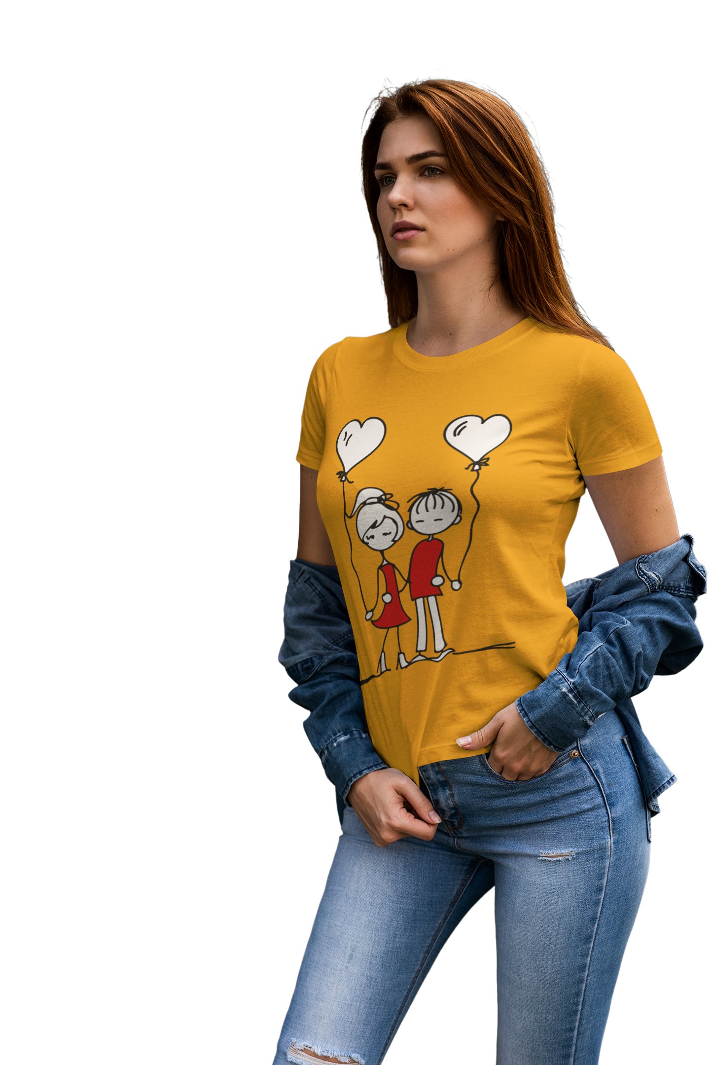 Couple Holding Heart Balloons Printed Yellow T-Shirts