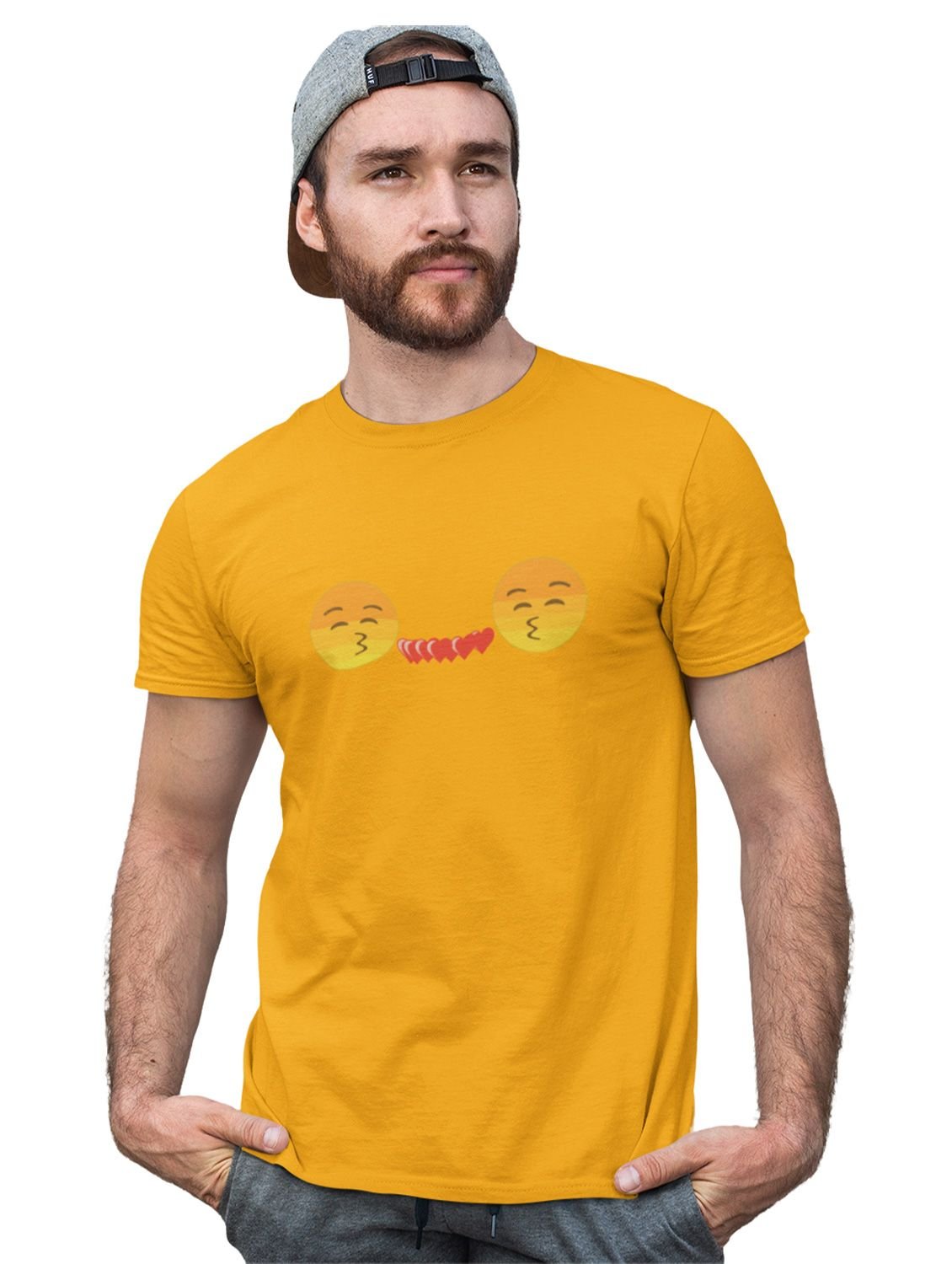 Couples Showing Flying Kiss Emoji T-shirt (Yellow) - Clothes for Emoji Lovers - Suitable for Fun Events - Foremost Gifting Material for Your Friends and Close Ones