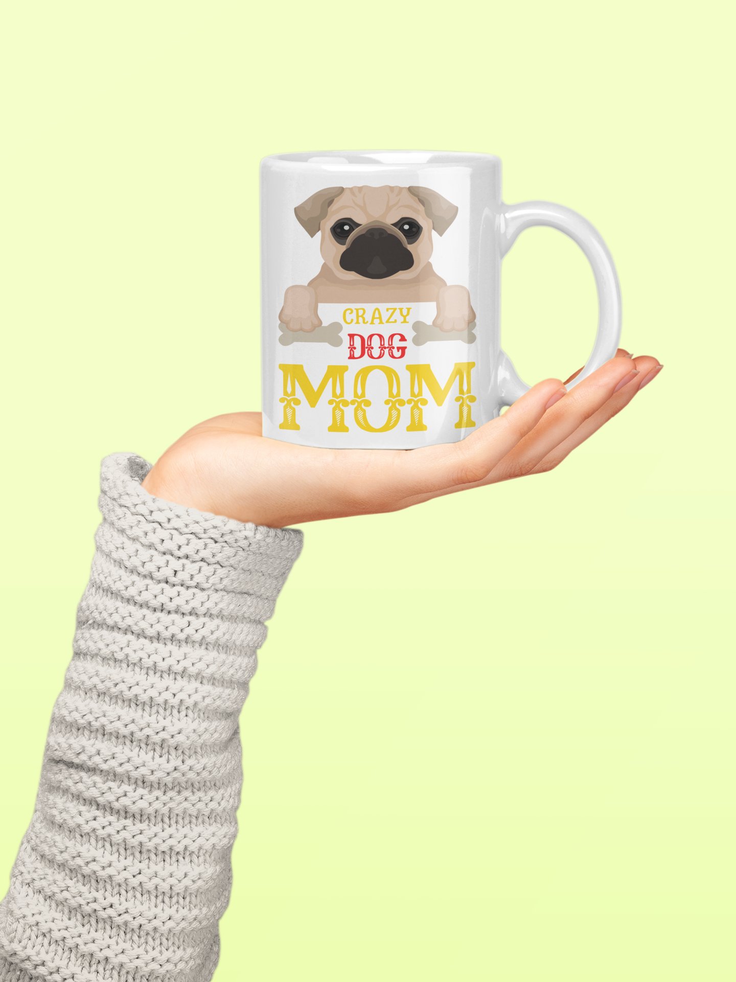 Crazy dog mom - pets themed printed ceramic white coffee and tea mugs/ cups for pets lover people