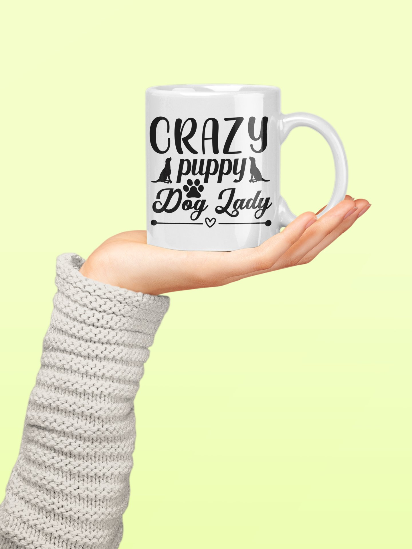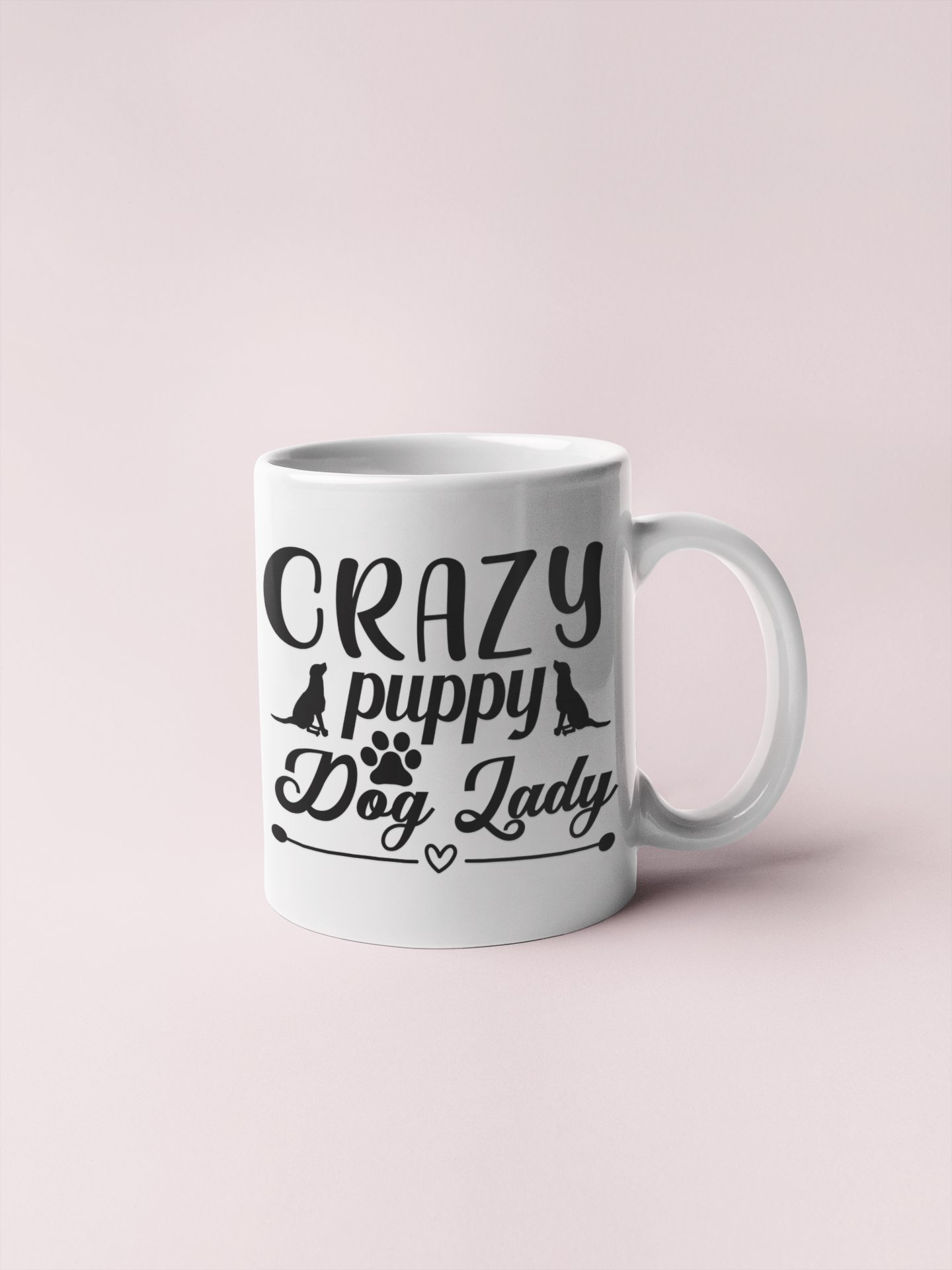 Crazy Puppy dog lady - pets themed printed ceramic white coffee and tea mugs/ cups for pets lover people