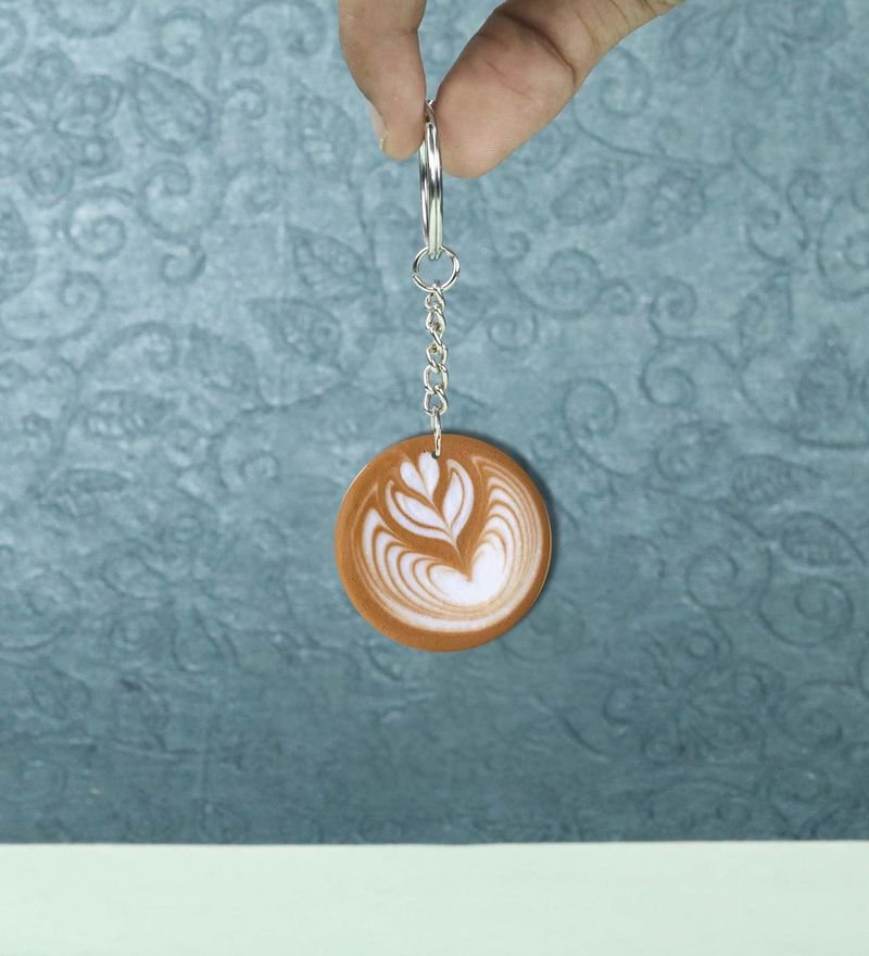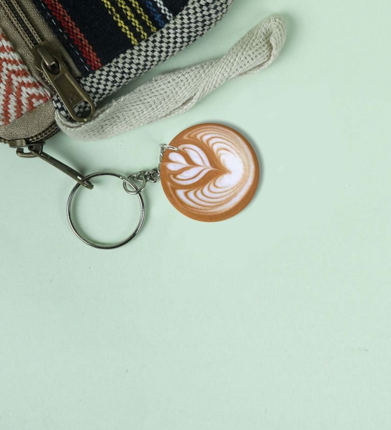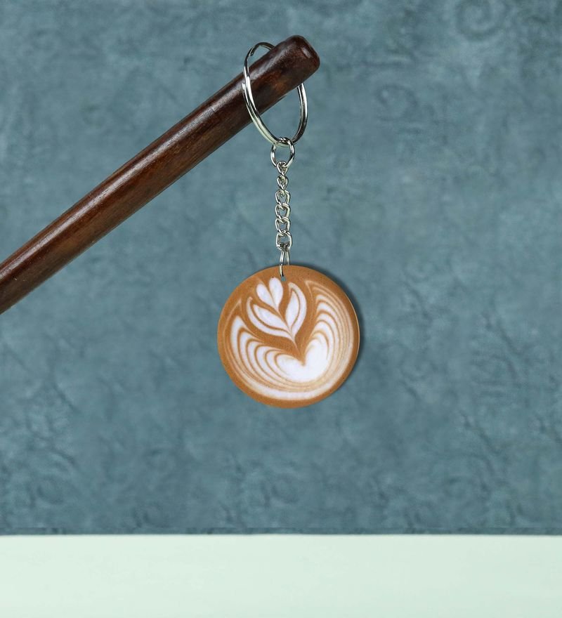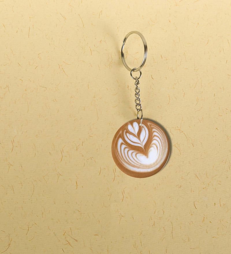 Creamy Coffee Swirl Pattern Printed Round Keychain Pack of 2