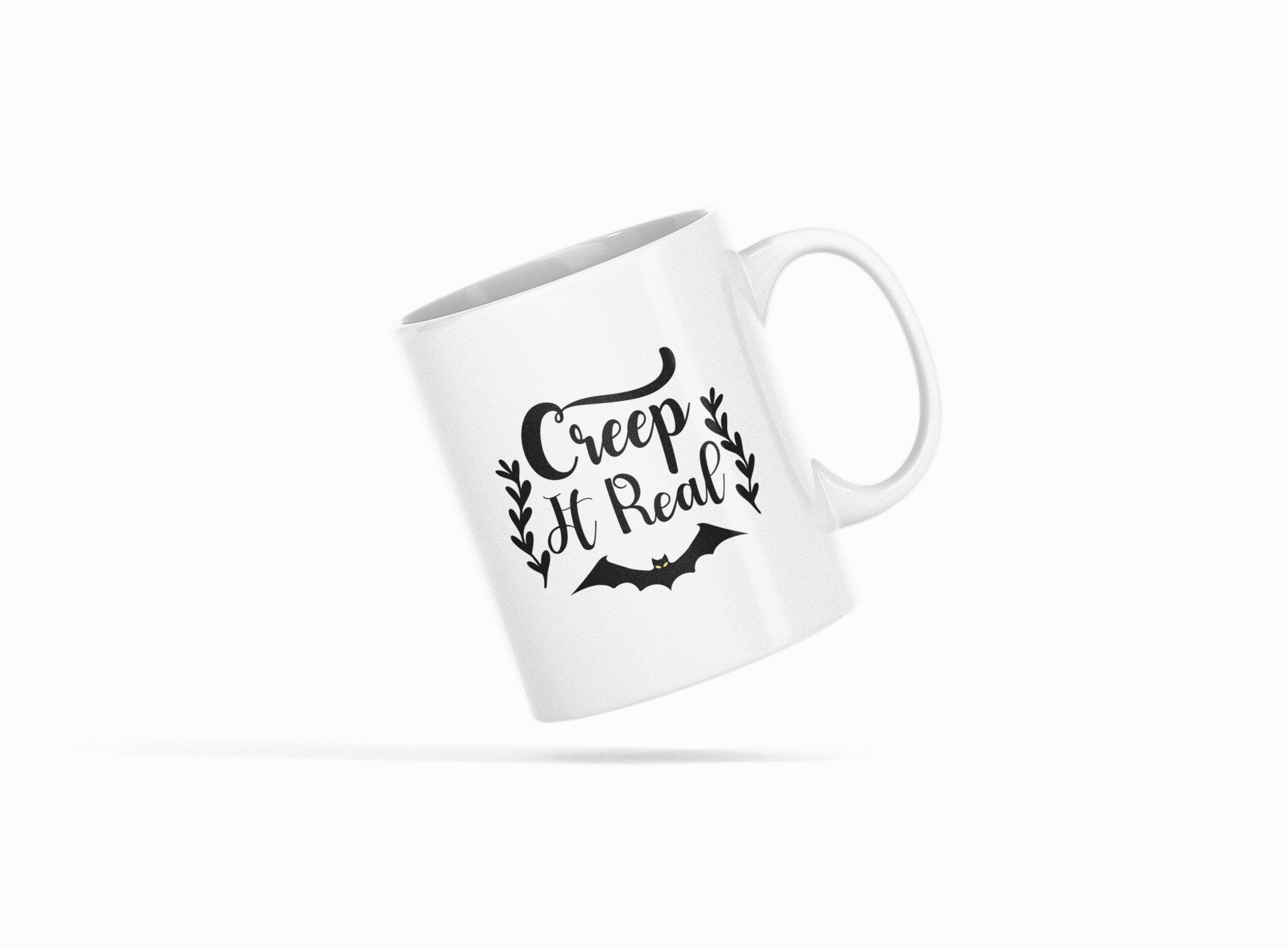 Creep it real-Bat Black Text -Halloween Themed Printed Coffee Mugs