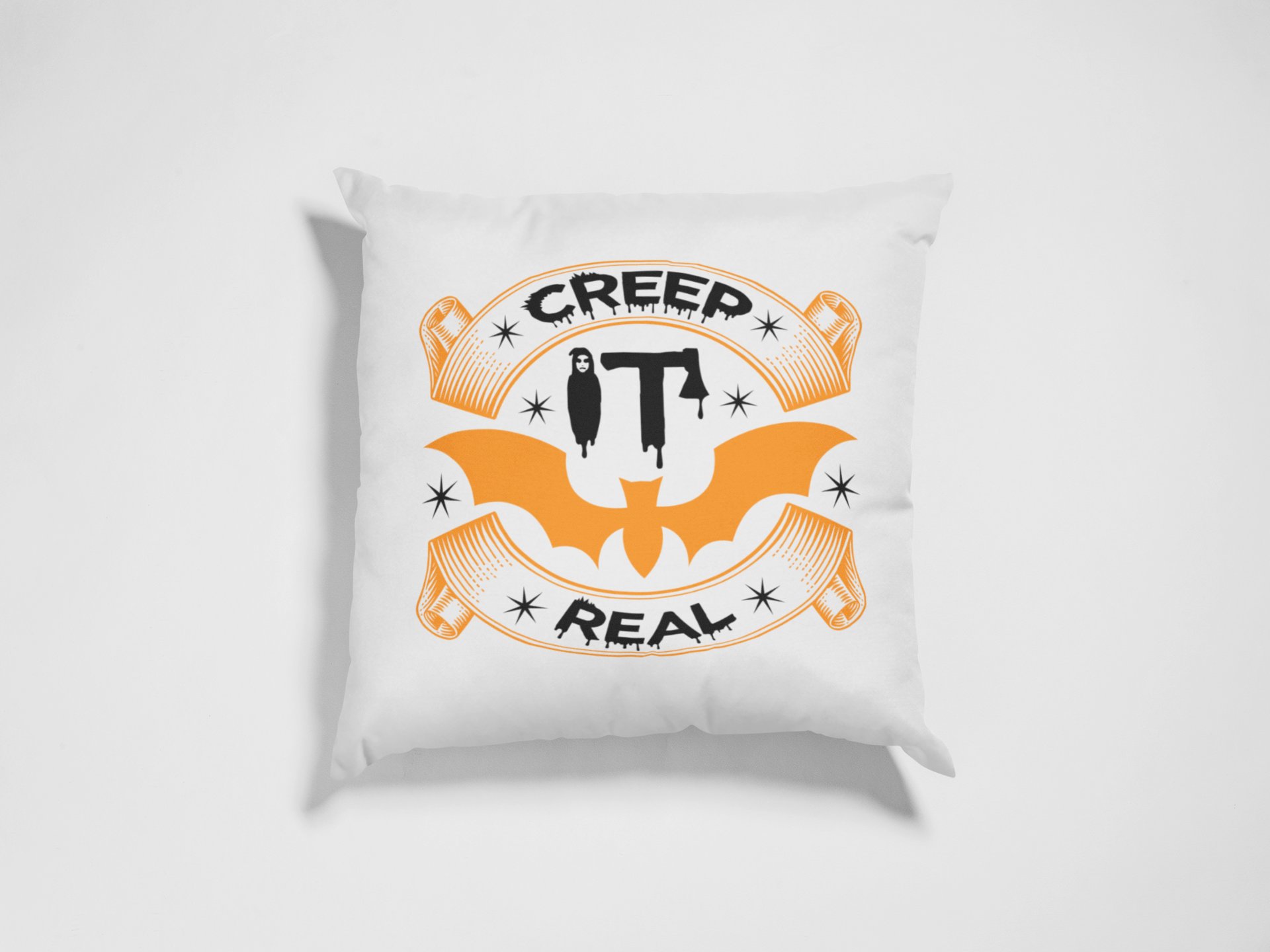 Creep it real-Bat(BG Orange)-Halloween Theme Pillow Covers (Pack Of 2)