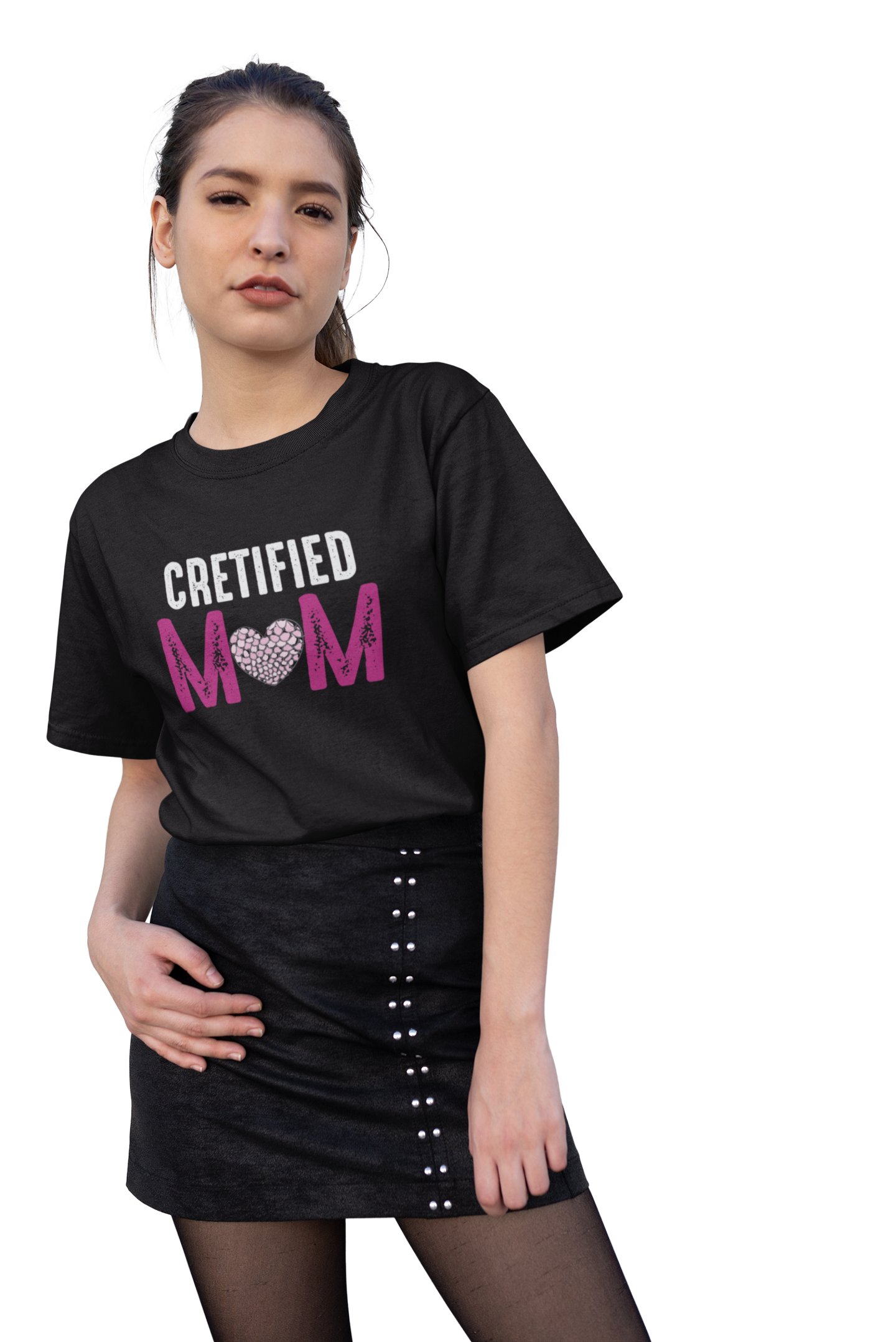 Cretified Mom-printed family themed cotton blended half-sleeve t-shirts made for women (black)