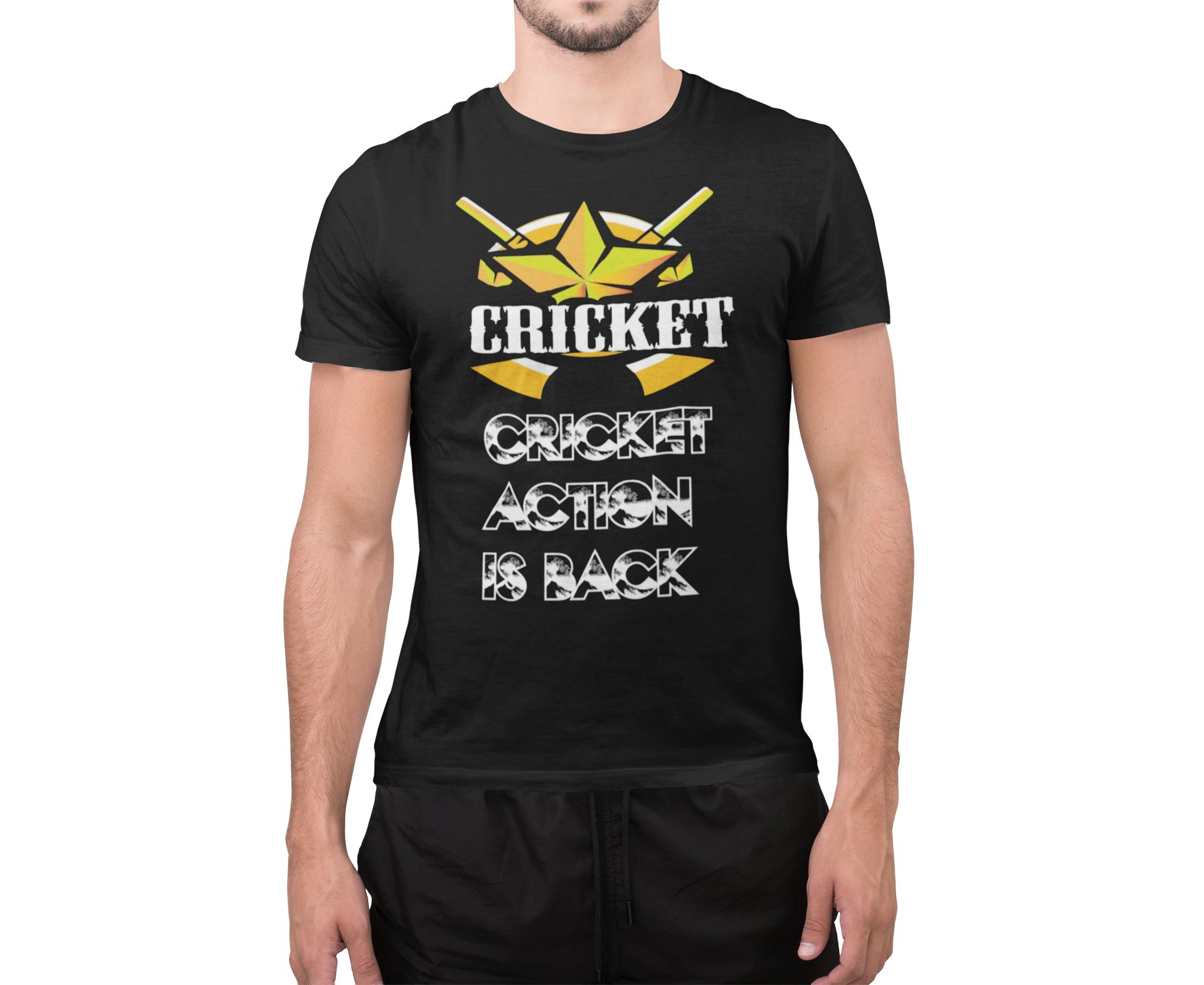 Cricket Action is back - Black - Printed - Sports cool Men's T-shirt