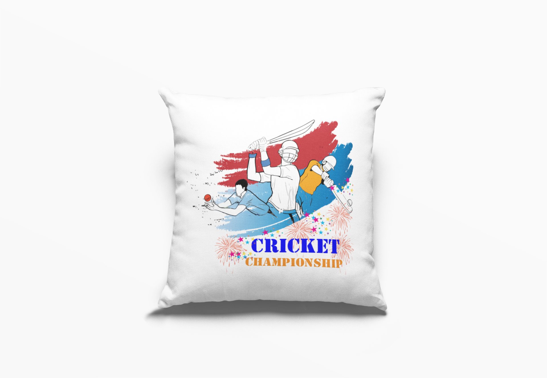 Cricket Championship Text In Blue And Yellow -Printed Pillow Covers (Pack Of 2)