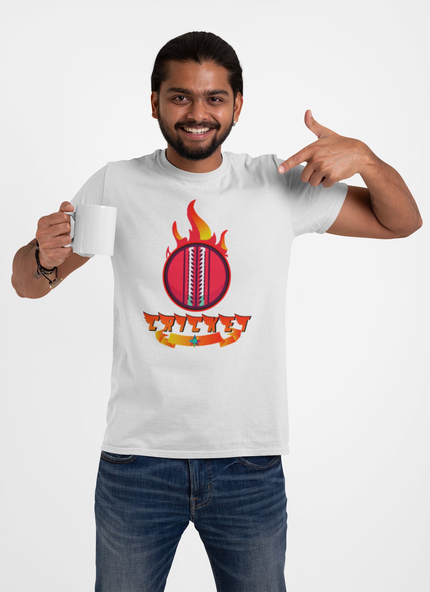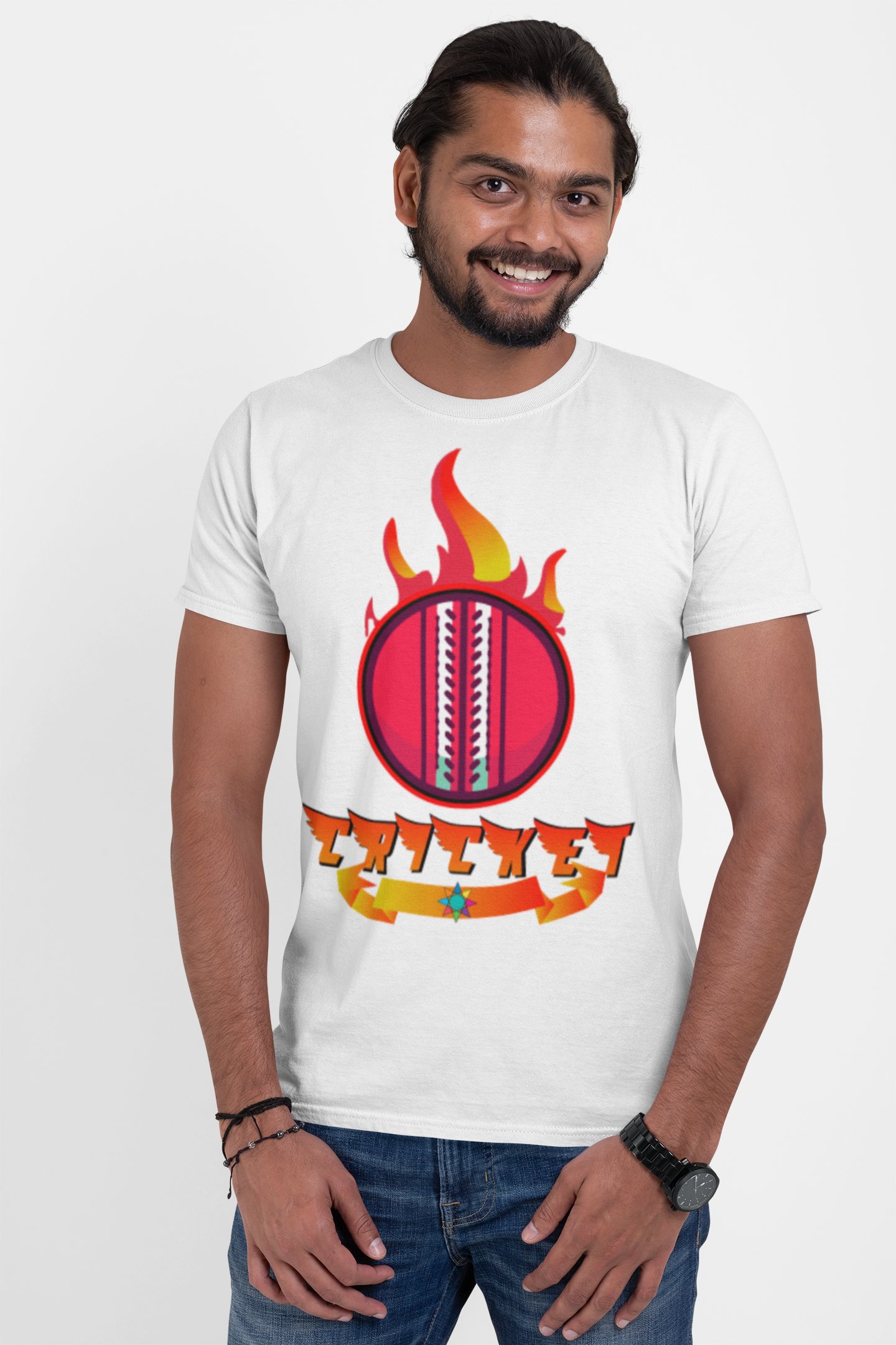 Cricket - firey ball - White - Printed - Sports cool Men's T-shirt