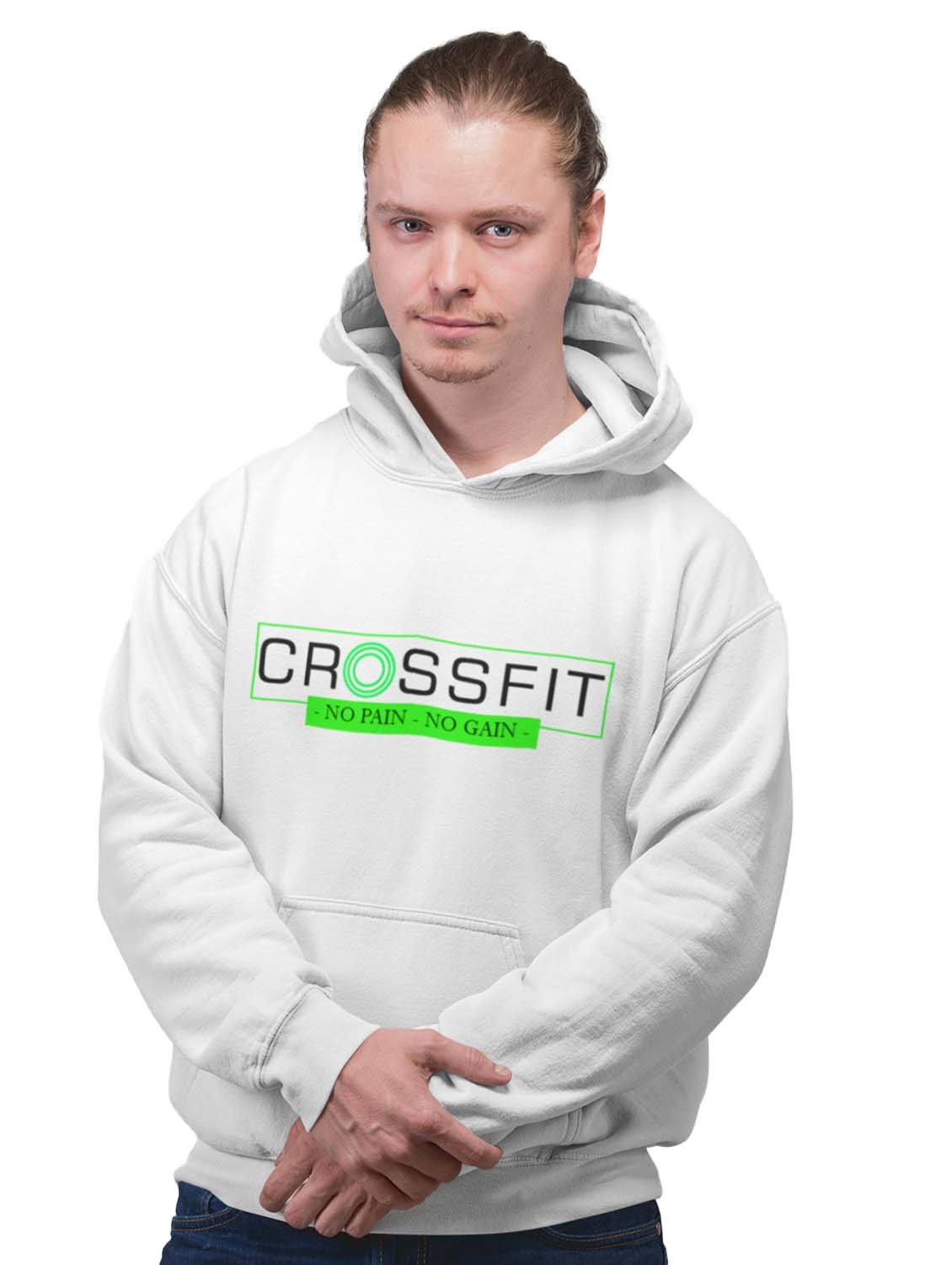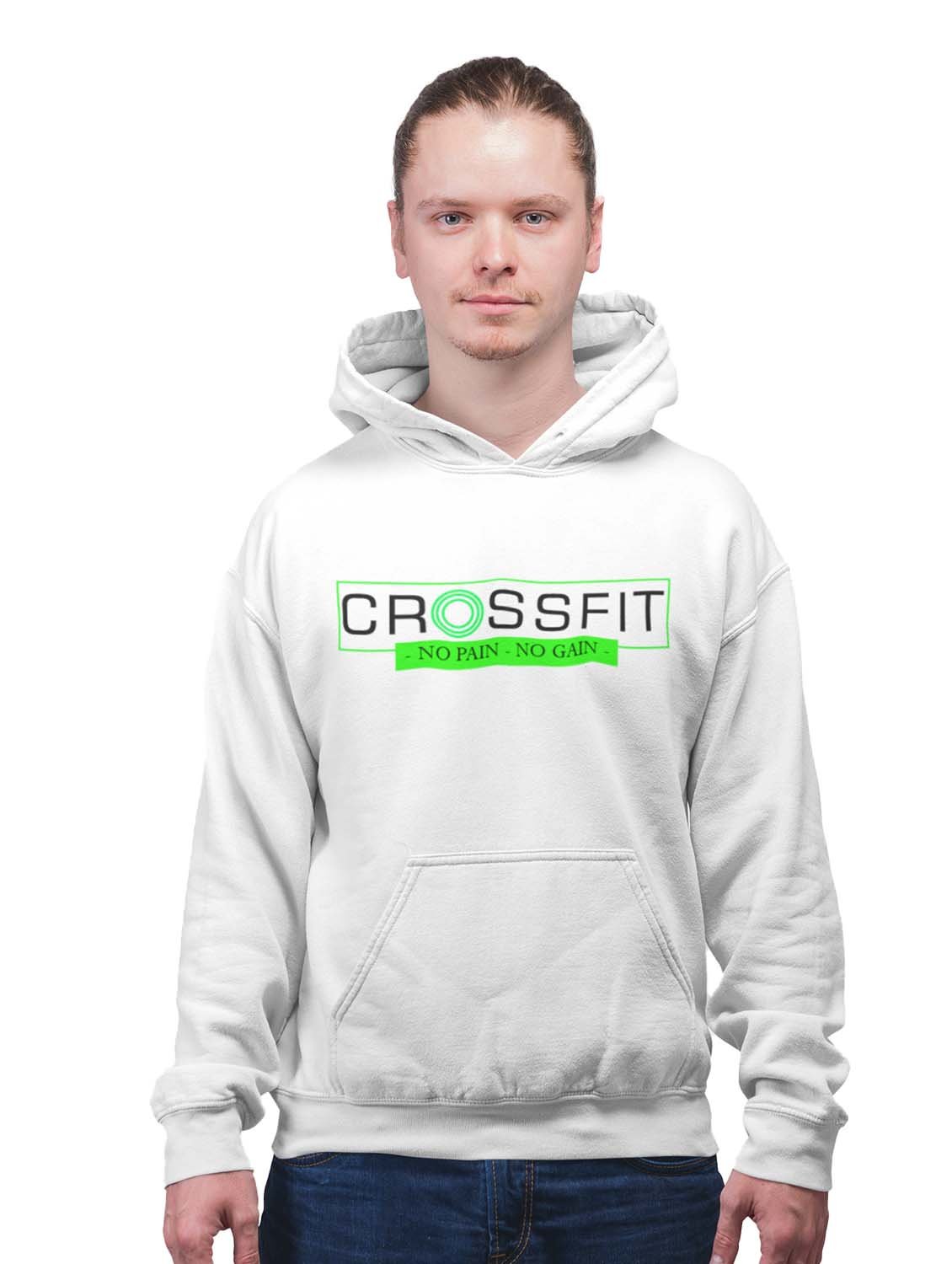 Crossfit, No Pain, No Gain printed activewear white hoodies for winter casual wear specially for Men