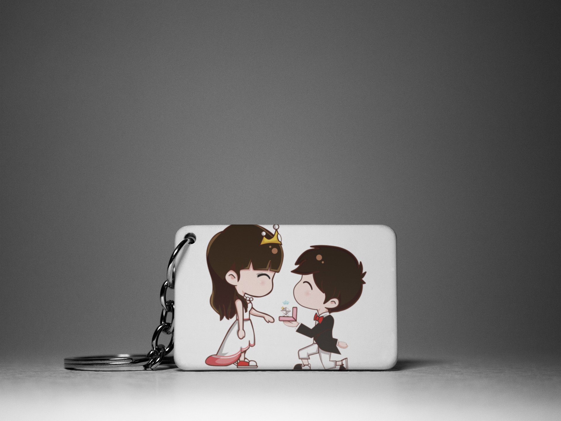 Cute Animation Boy Purposing Girl-White -Valentine's Special Keychains(Pack Of 2)
