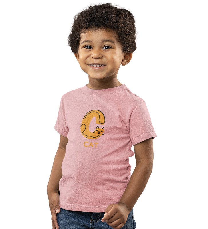 Cute cat, Boys Cotton Text Print Tshirt (Baby pink)