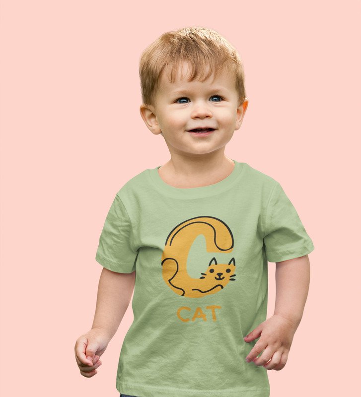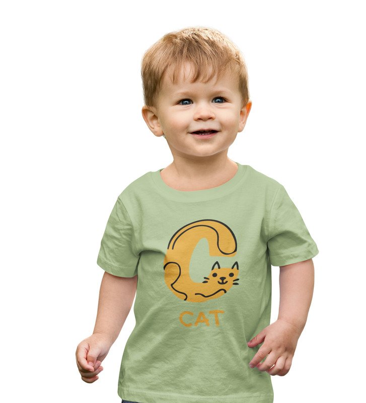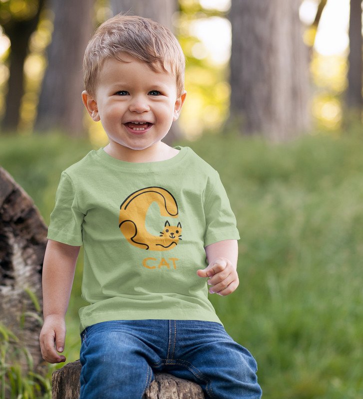 Cute cat, Boys Cotton Text Print tshirt (olive)