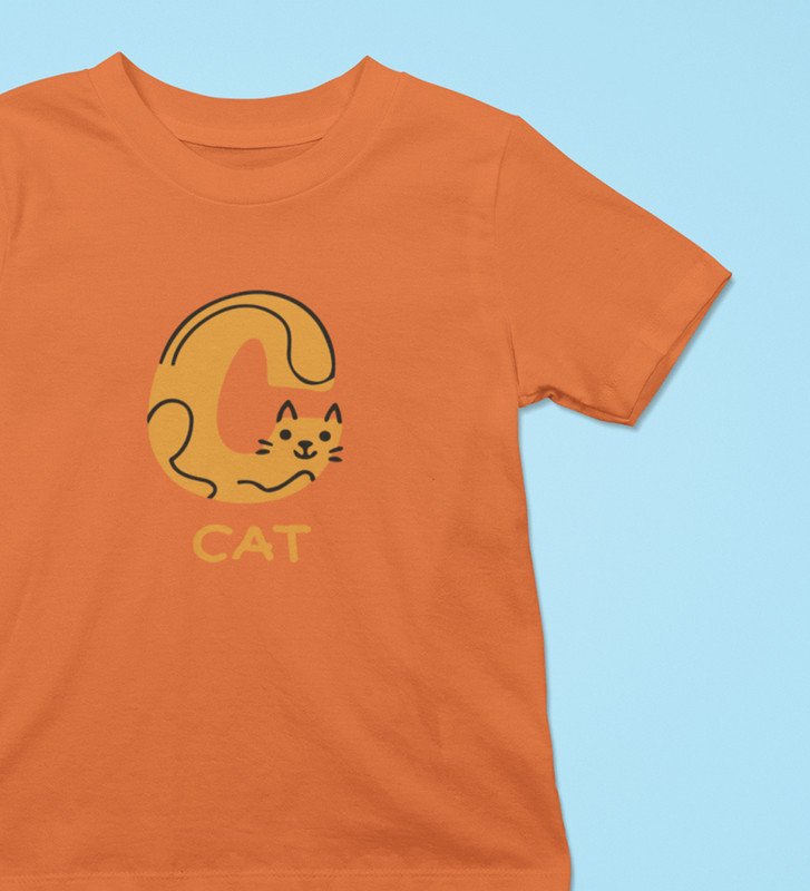 Cute cat, Boys Cotton Text Print Tshirt (orange)