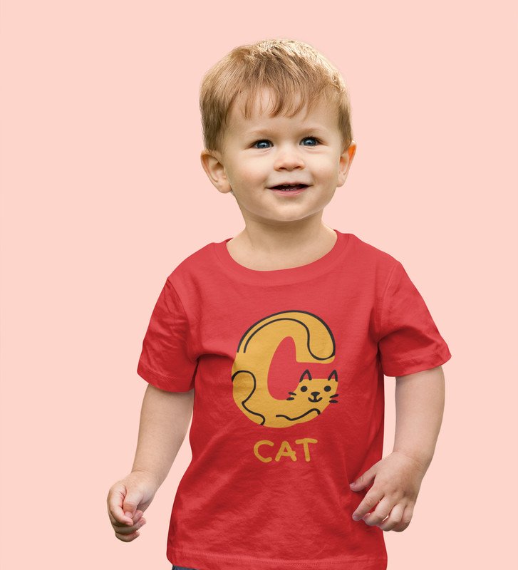 Cute cat, Boys Cotton Text Print tshirt (red)
