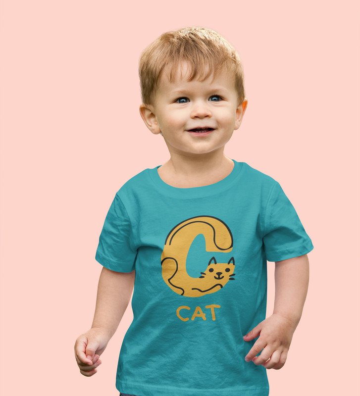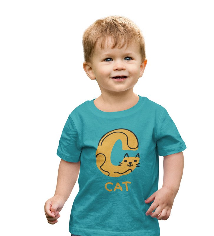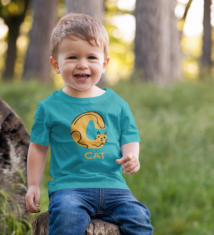 Cute cat, Boys Cotton Text Print tshirt (teal)