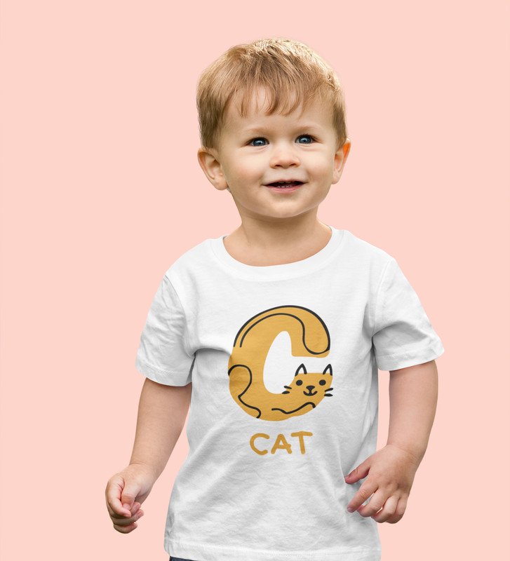 Cute cat, Boys Cotton Text Print tshirt (white)