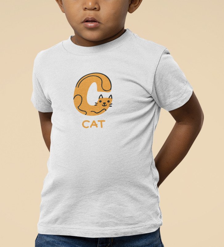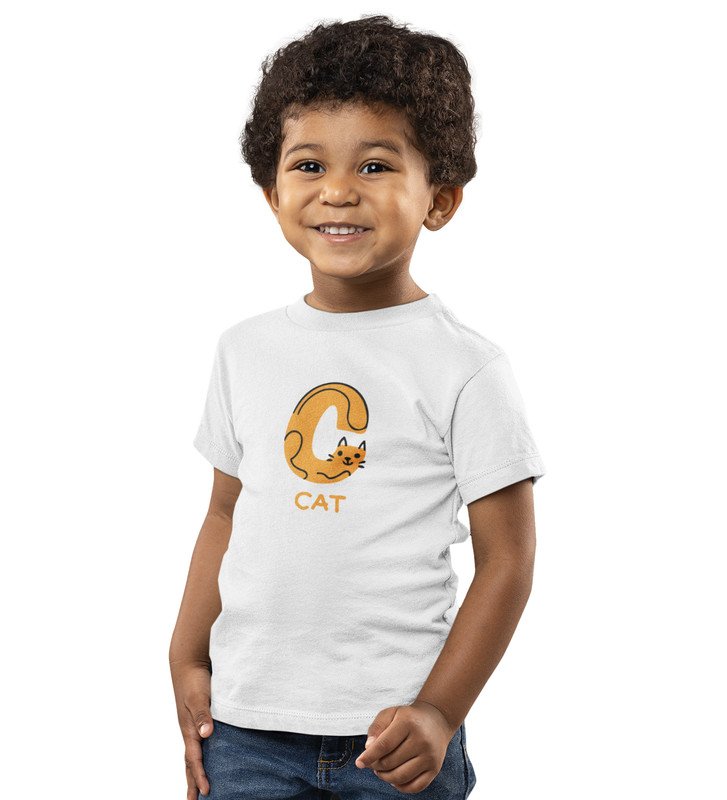 Cute cat, Boys Cotton Text Print Tshirt (White)