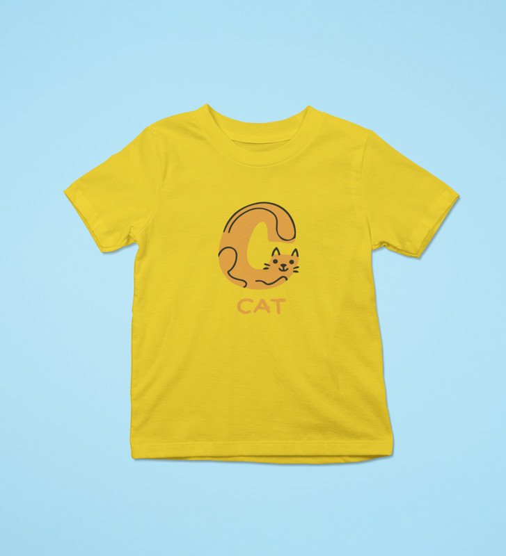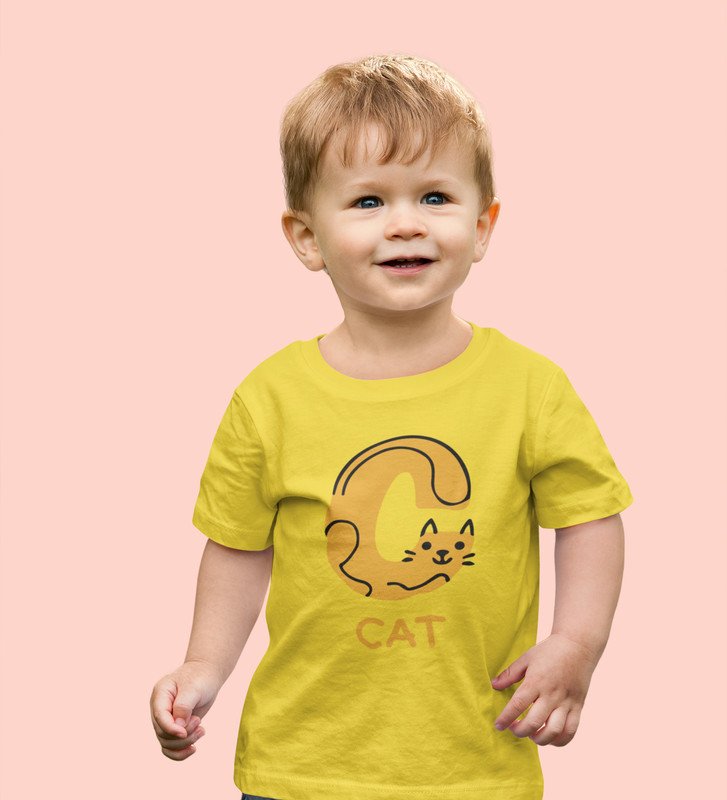Cute cat, Boys Cotton Text Print tshirt (yellow)