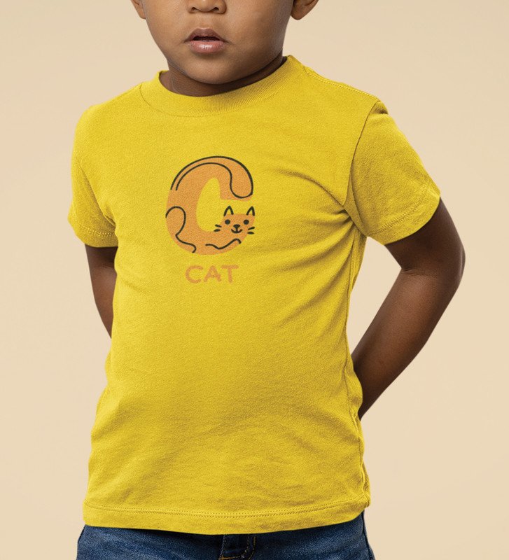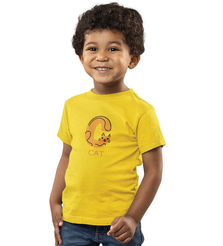 Cute cat, Boys Cotton Text Print Tshirt (Yellow)