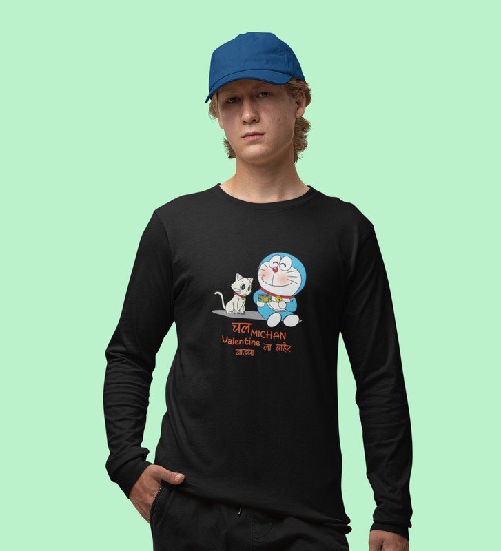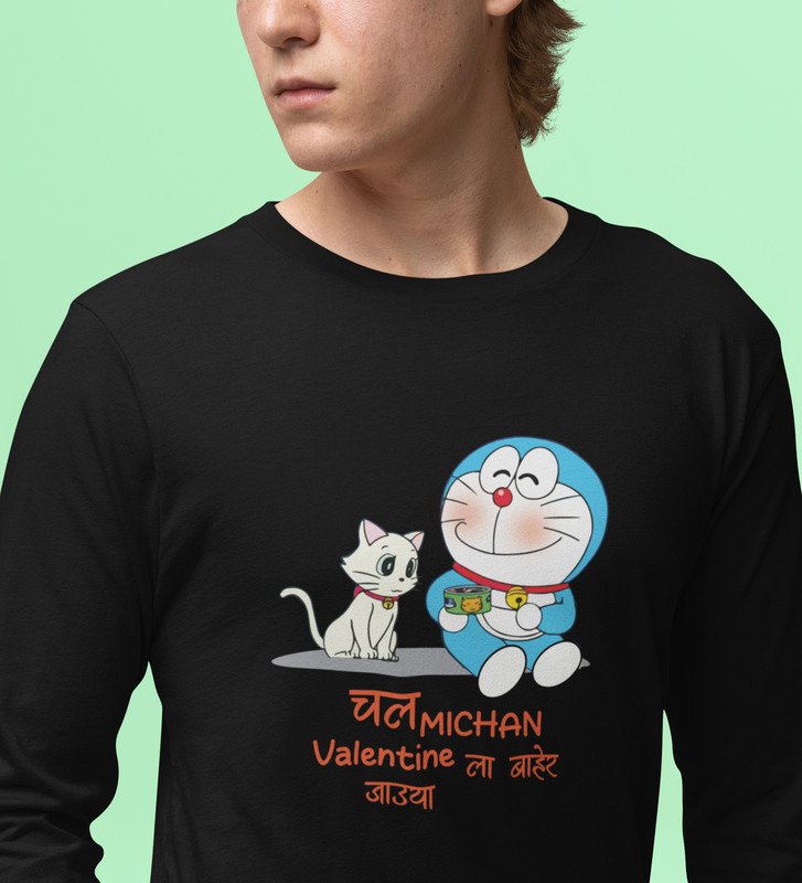 Cute Couples: Printed (black) Full Sleeve T-Shirt For Singles