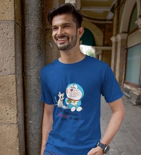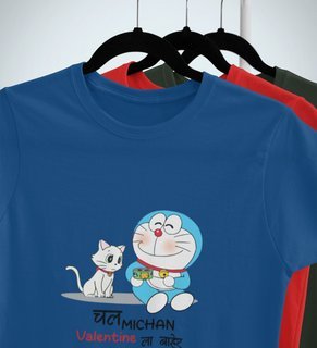 Cute Couples: Printed (Blue) T-Shirt For Singles