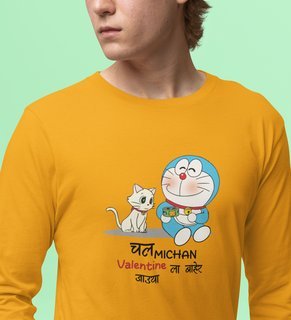 Cute Couples: Printed (yellow) Full Sleeve T-Shirt For Singles