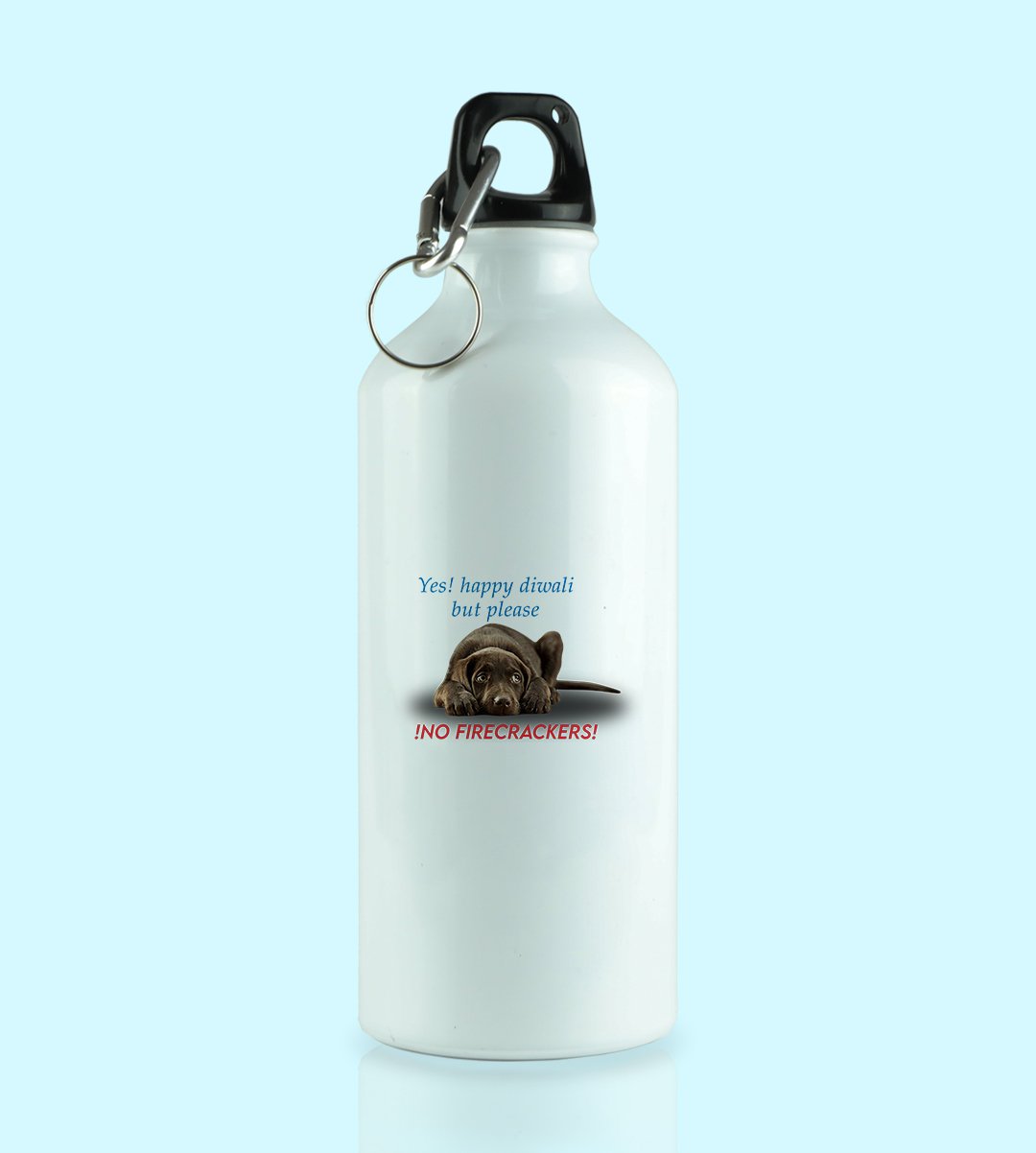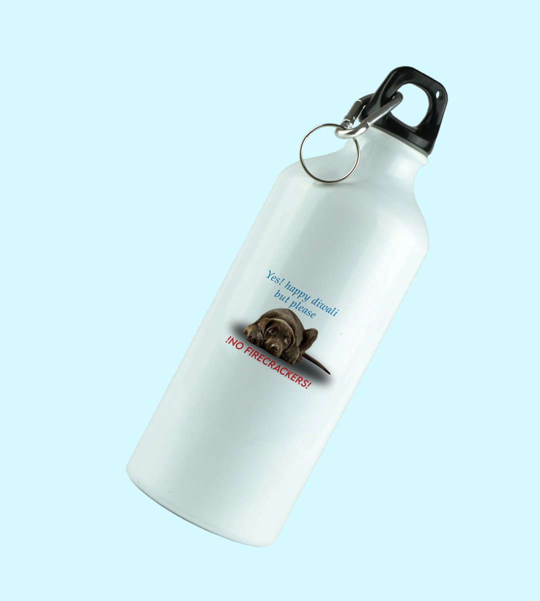 Cute Dog Diwali sipper bottle - Yes Happy Diwali, But Please No Firecracker