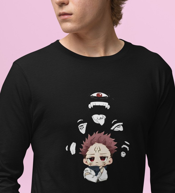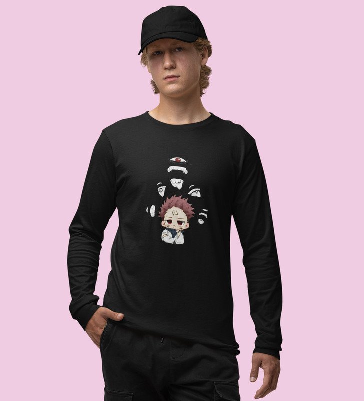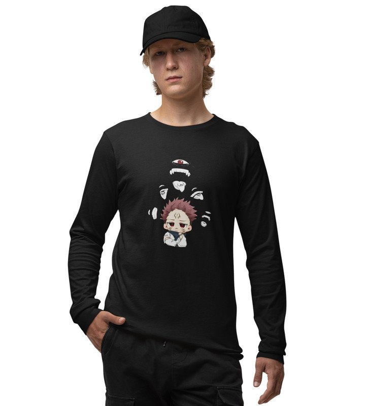 Cute Itadori Printed Cotton Black Full Sleeves Tshirt For Mens and Boys