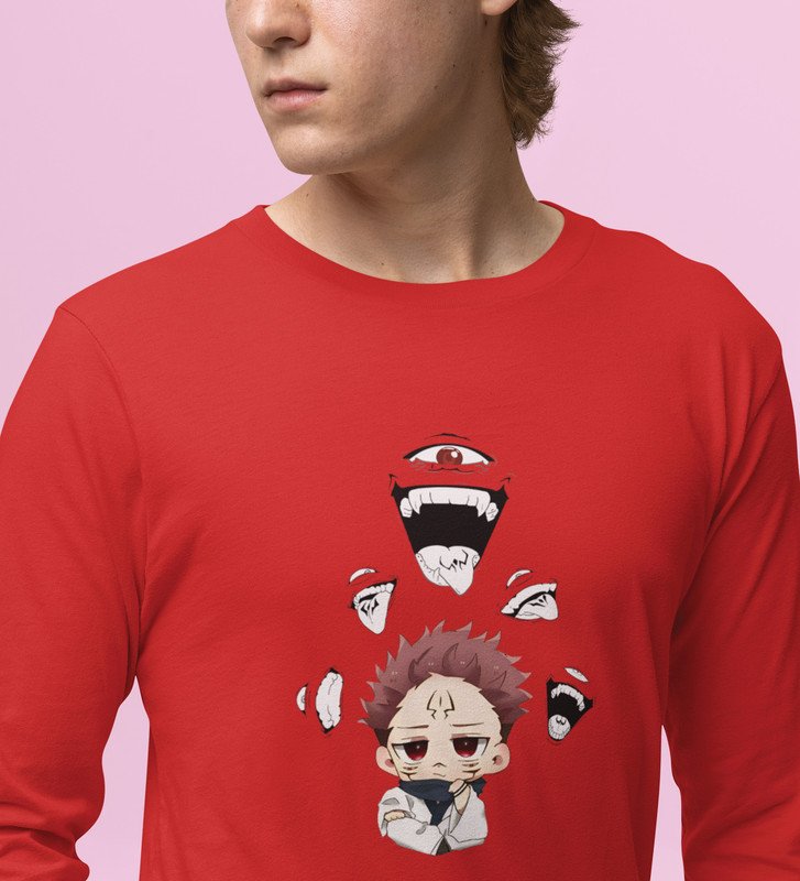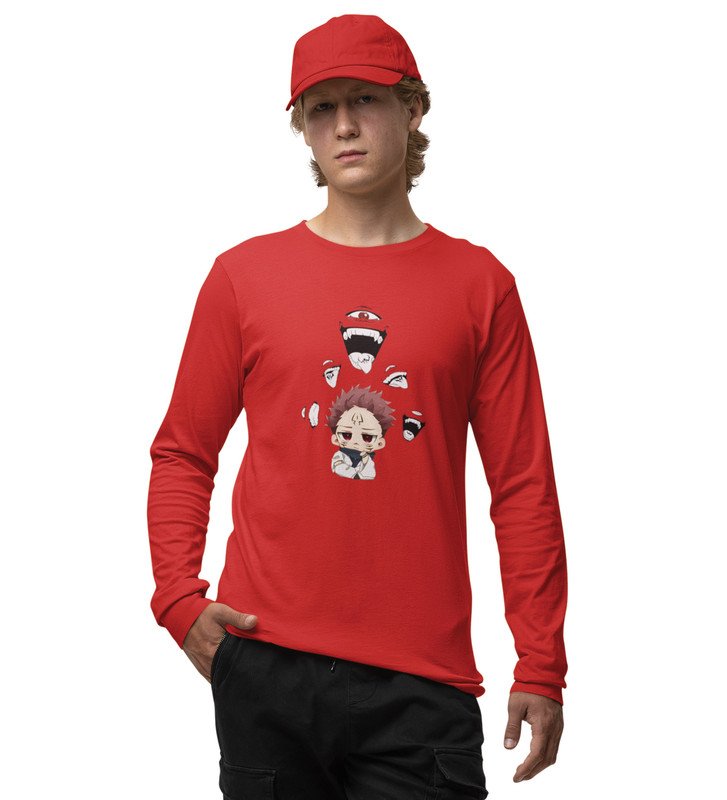 Cute Itadori Printed Cotton Red Full Sleeves Tshirt For Mens and Boys