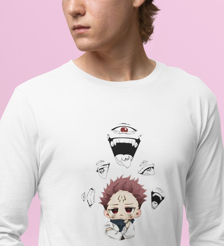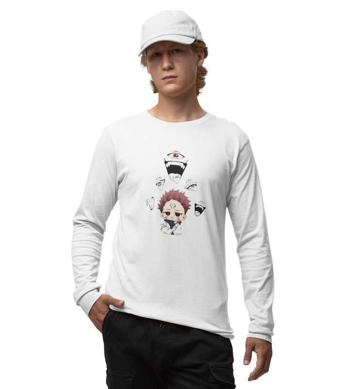 Cute Itadori Printed Cotton White Full Sleeves Tshirt For Mens and Boys