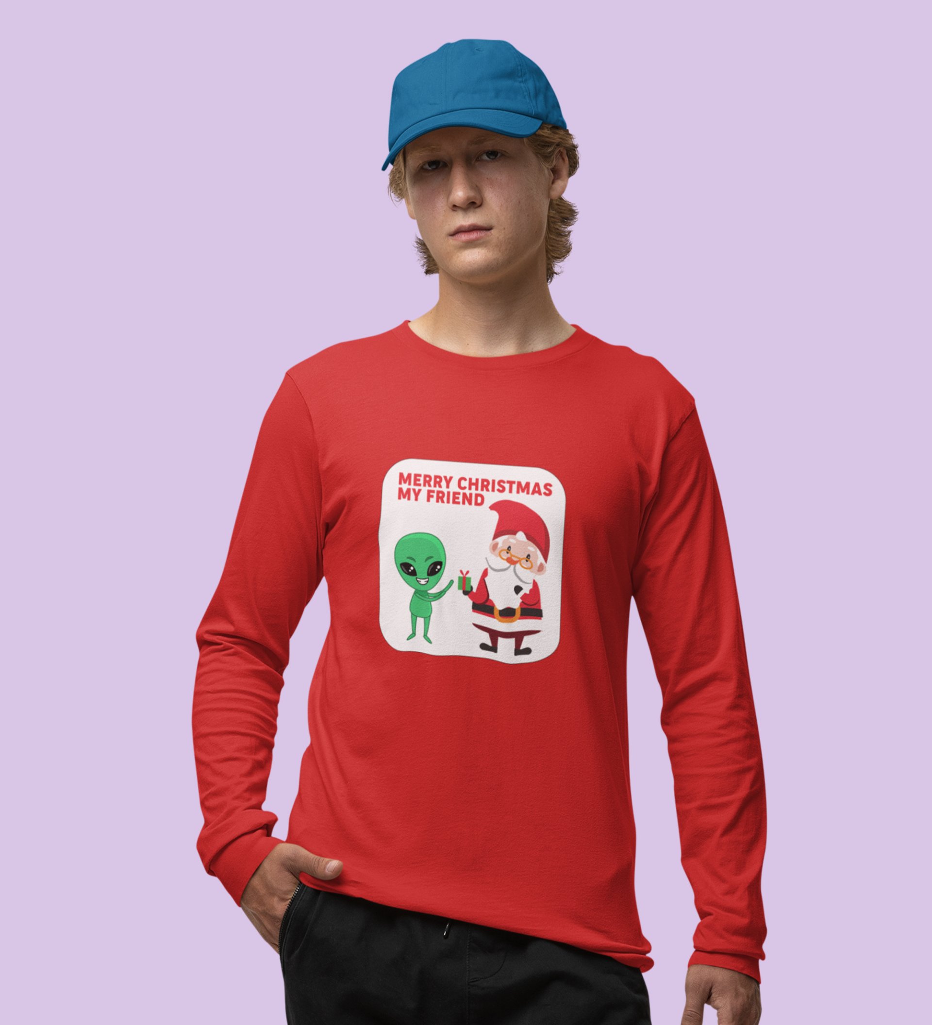 Cute Santa With Alien: Cutest DesignedFull Sleeve T-shirt Red Best Gift For Kids
