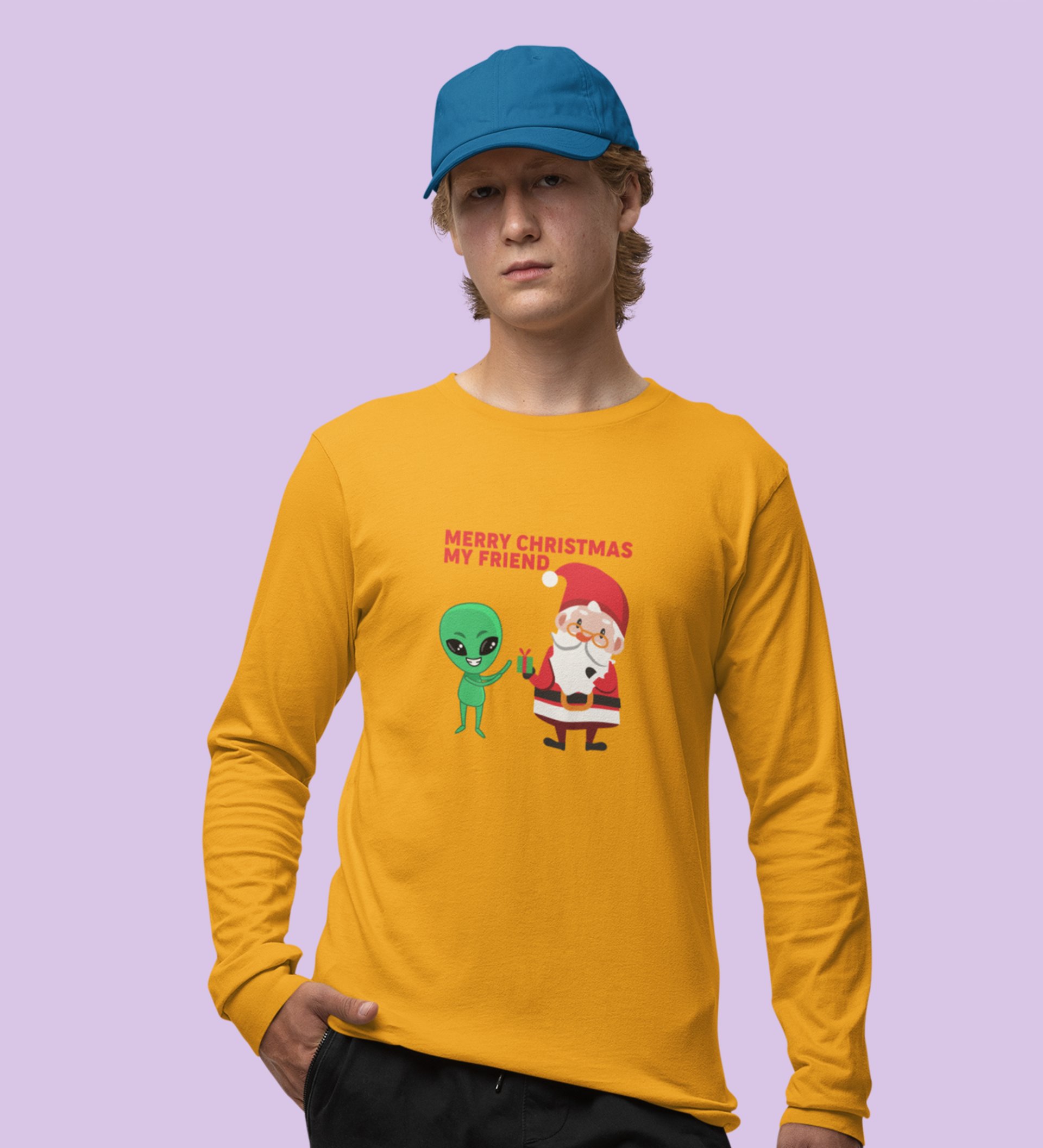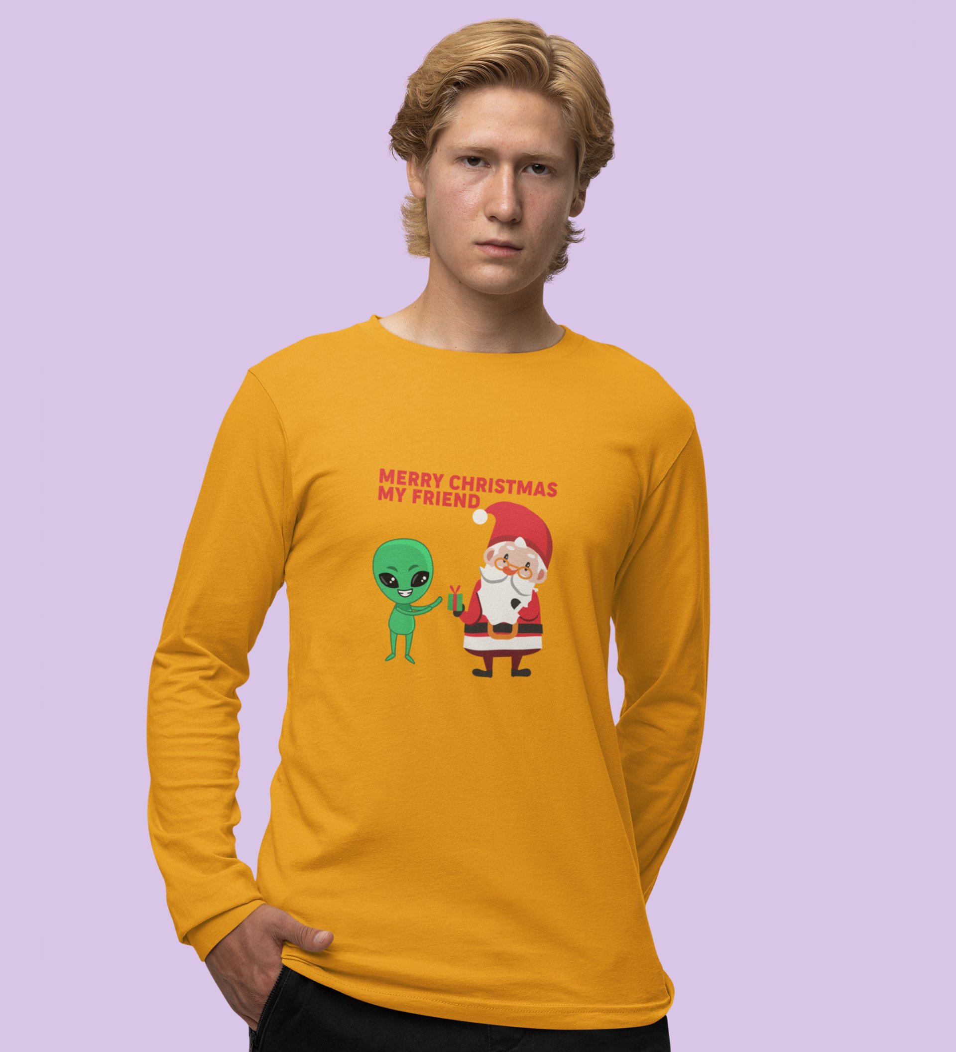 Cute Santa With Alien: Cutest DesignedFull Sleeve T-shirt Yellow Best Gift For Kids