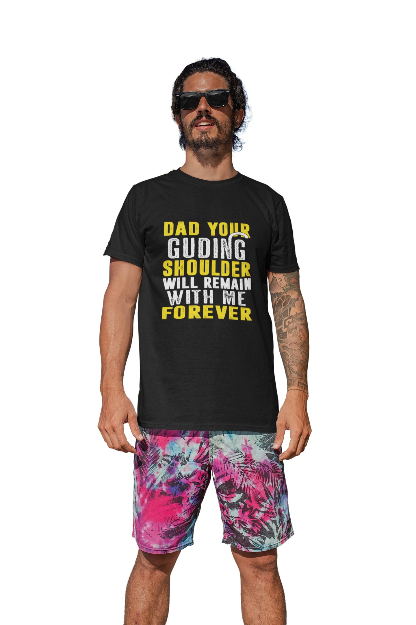 Dad your guding shoulder -printed family themed cotton blended half-sleeve t-shirts made for men (black)