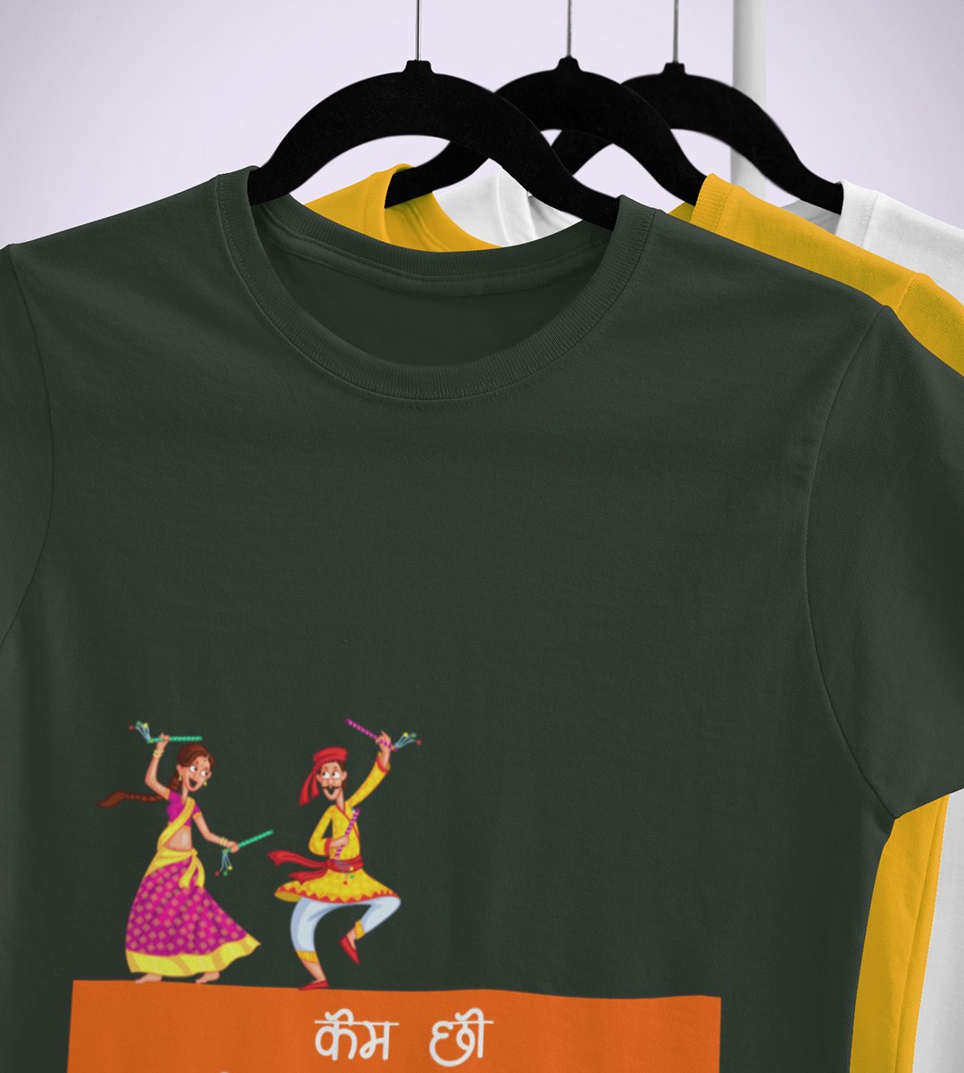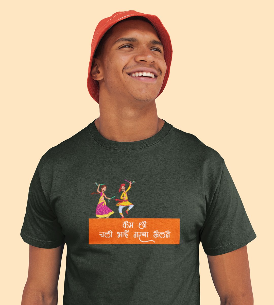 Navratri is a very auspicious festival for hindus. It takes place at the beginning of October and sometimes September. Enjoy the 9 days of festivities with full zeal and make yourself submerged in the love of Maa Durga. Navratri is also known as Durga Puja. And with this Tees, you can shine like a star during this festive season with our navratri themed cotton half sleeved Tshirts. You can pair our t-shirts with trousers and denim of your choice and make it a weekday smart casual or weekend wear. This is durable. This tshirt is smooth and soft which makes you comfortable to wear during all seasons. The printing in it is durable and odourless. It has five sizes, S,M,L,XL,XXL. The Tshirt colour is intact even after repeated washes. It can be kept in your wardrobe and hangers. Please avoid washing mashine to clean this Tee, it may affect the print. Hand wash only. We have brought you many navratri related designs printed on our different colour Tshirts to choose from. Grab it now.