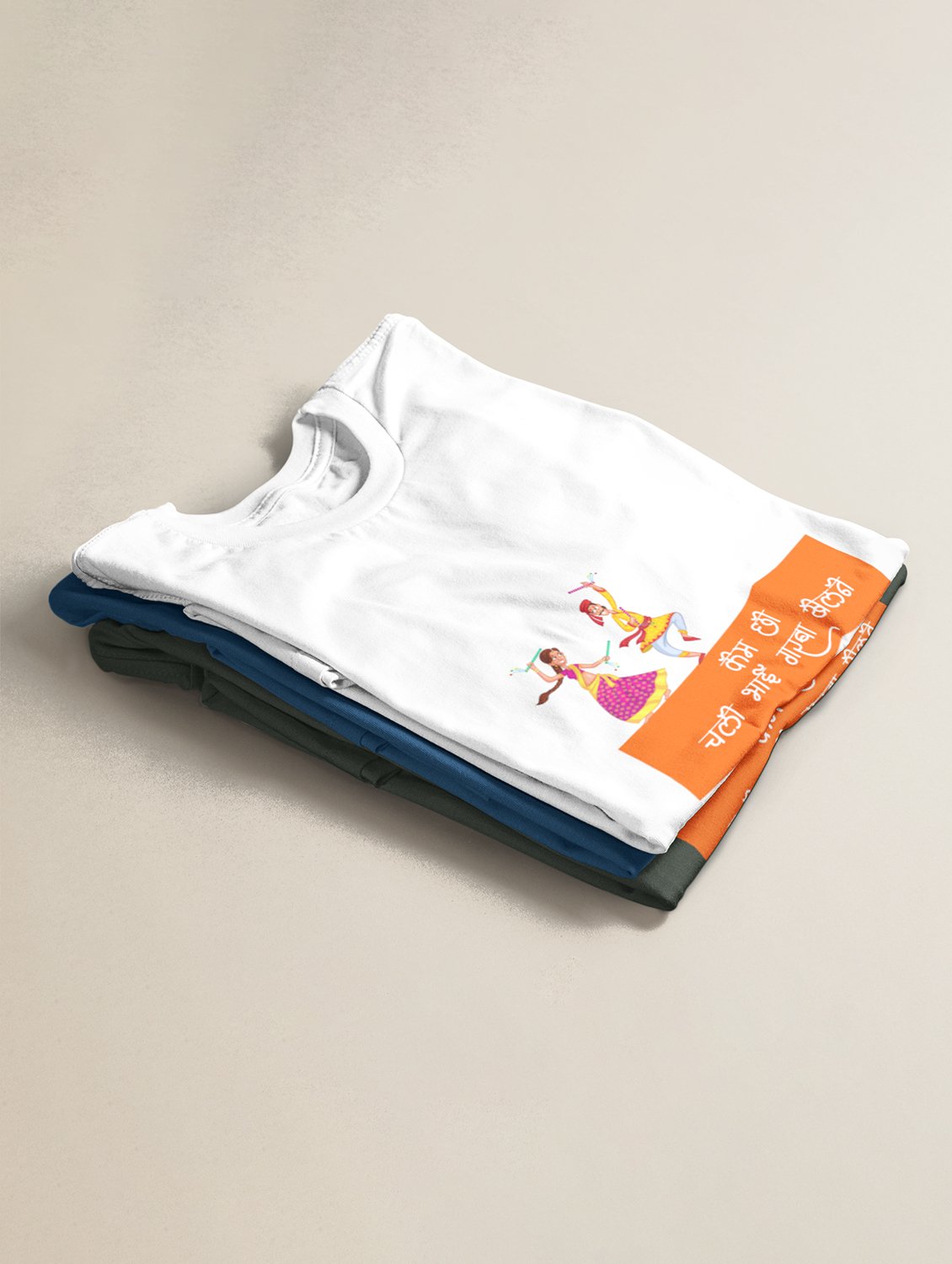 Dancing couple (small) printed unisex adults round neck cotton half-sleeve blue tshirt specially for Navratri festival/ Durga puja