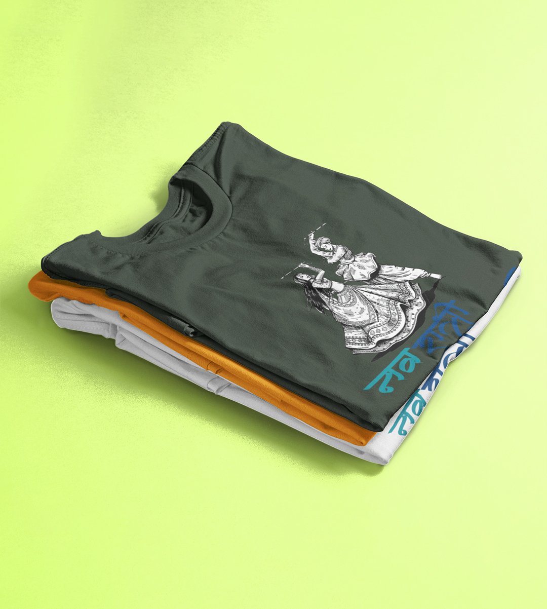 Navratri is a very auspicious festival for hindus. It takes place at the beginning of October and sometimes September. Enjoy the 9 days of festivities with full zeal and make yourself submerged in the love of Maa Durga. Navratri is also known as Durga Puja. And with this Tees, you can shine like a star during this festive season with our navratri themed cotton half sleeved Tshirts. You can pair our t-shirts with trousers and denim of your choice and make it a weekday smart casual or weekend wear. This is durable. This tshirt is smooth and soft which makes you comfortable to wear during all seasons. The printing in it is durable and odourless. It has five sizes, S,M,L,XL,XXL. The Tshirt colour is intact even after repeated washes. It can be kept in your wardrobe and hangers. Please avoid washing mashine to clean this Tee, it may affect the print. Hand wash only. We have brought you many navratri related designs printed on our different colour Tshirts to choose from. Grab it now.