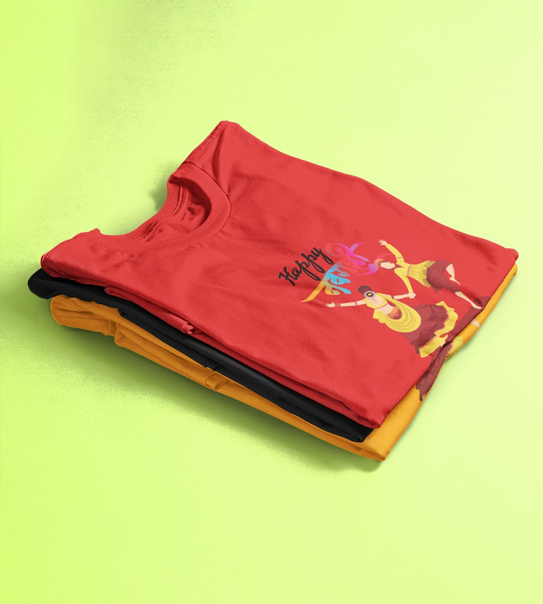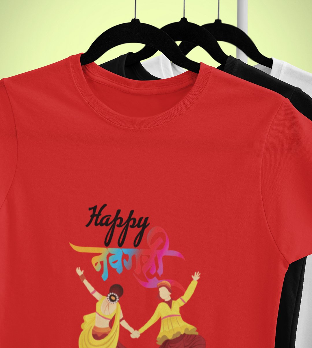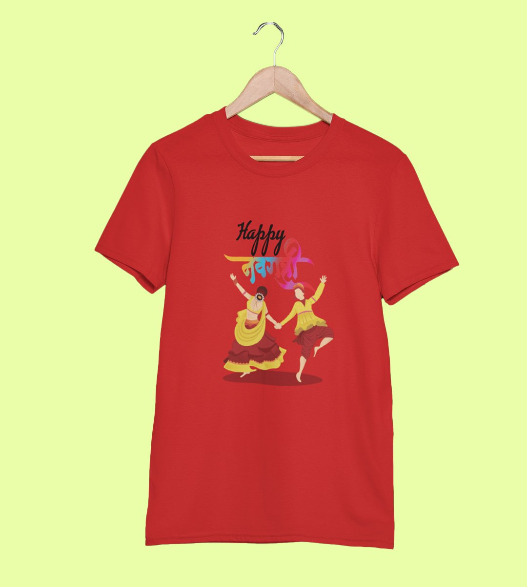 Dancing garba printed unisex adults round neck cotton half-sleeve red tshirt specially for Navratri festival/ Durga puja