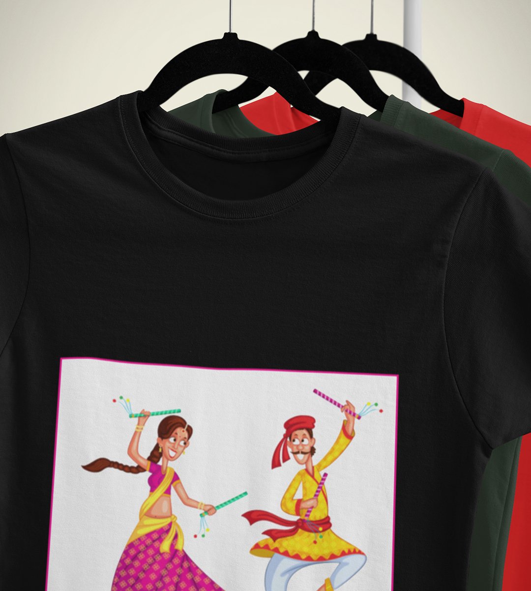 Navratri is a very auspicious festival for hindus. It takes place at the beginning of October and sometimes September. Enjoy the 9 days of festivities with full zeal and make yourself submerged in the love of Maa Durga. Navratri is also known as Durga Puja. And with this Tees, you can shine like a star during this festive season with our navratri themed cotton half sleeved Tshirts. You can pair our t-shirts with trousers and denim of your choice and make it a weekday smart casual or weekend wear. This is durable. This tshirt is smooth and soft which makes you comfortable to wear during all seasons. The printing in it is durable and odourless. It has five sizes, S,M,L,XL,XXL. The Tshirt colour is intact even after repeated washes. It can be kept in your wardrobe and hangers. Please avoid washing mashine to clean this Tee, it may affect the print. Hand wash only. We have brought you many navratri related designs printed on our different colour Tshirts to choose from. Grab it now.