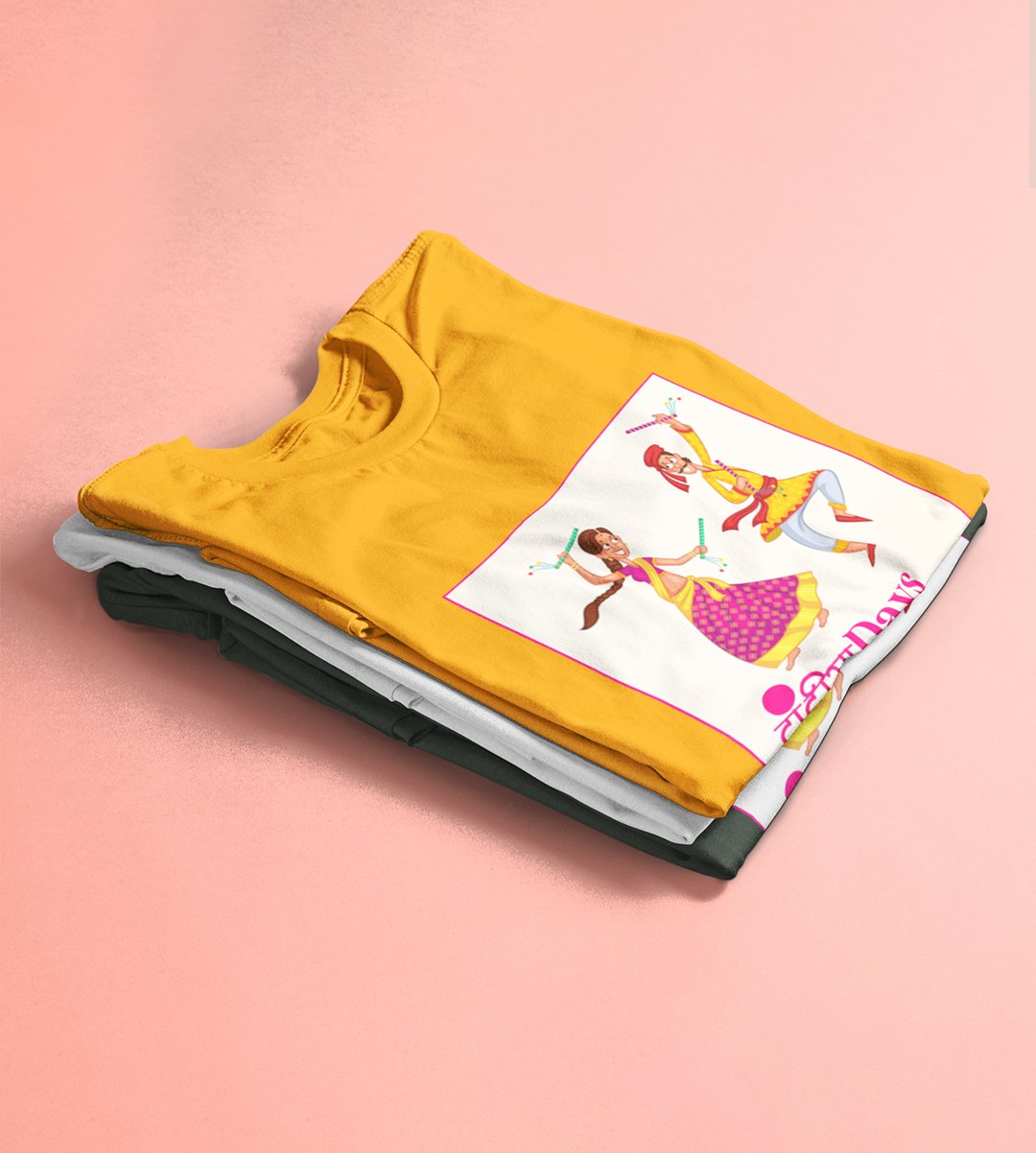 Navratri is a very auspicious festival for hindus. It takes place at the beginning of October and sometimes September. Enjoy the 9 days of festivities with full zeal and make yourself submerged in the love of Maa Durga. Navratri is also known as Durga Puja. And with this Tees, you can shine like a star during this festive season with our navratri themed cotton half sleeved Tshirts. You can pair our t-shirts with trousers and denim of your choice and make it a weekday smart casual or weekend wear. This is durable. This tshirt is smooth and soft which makes you comfortable to wear during all seasons. The printing in it is durable and odourless. It has five sizes, S,M,L,XL,XXL. The Tshirt colour is intact even after repeated washes. It can be kept in your wardrobe and hangers. Please avoid washing mashine to clean this Tee, it may affect the print. Hand wash only. We have brought you many navratri related designs printed on our different colour Tshirts to choose from. Grab it now.
