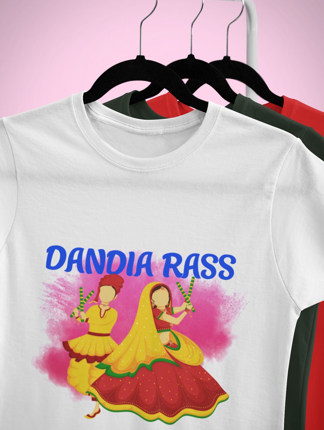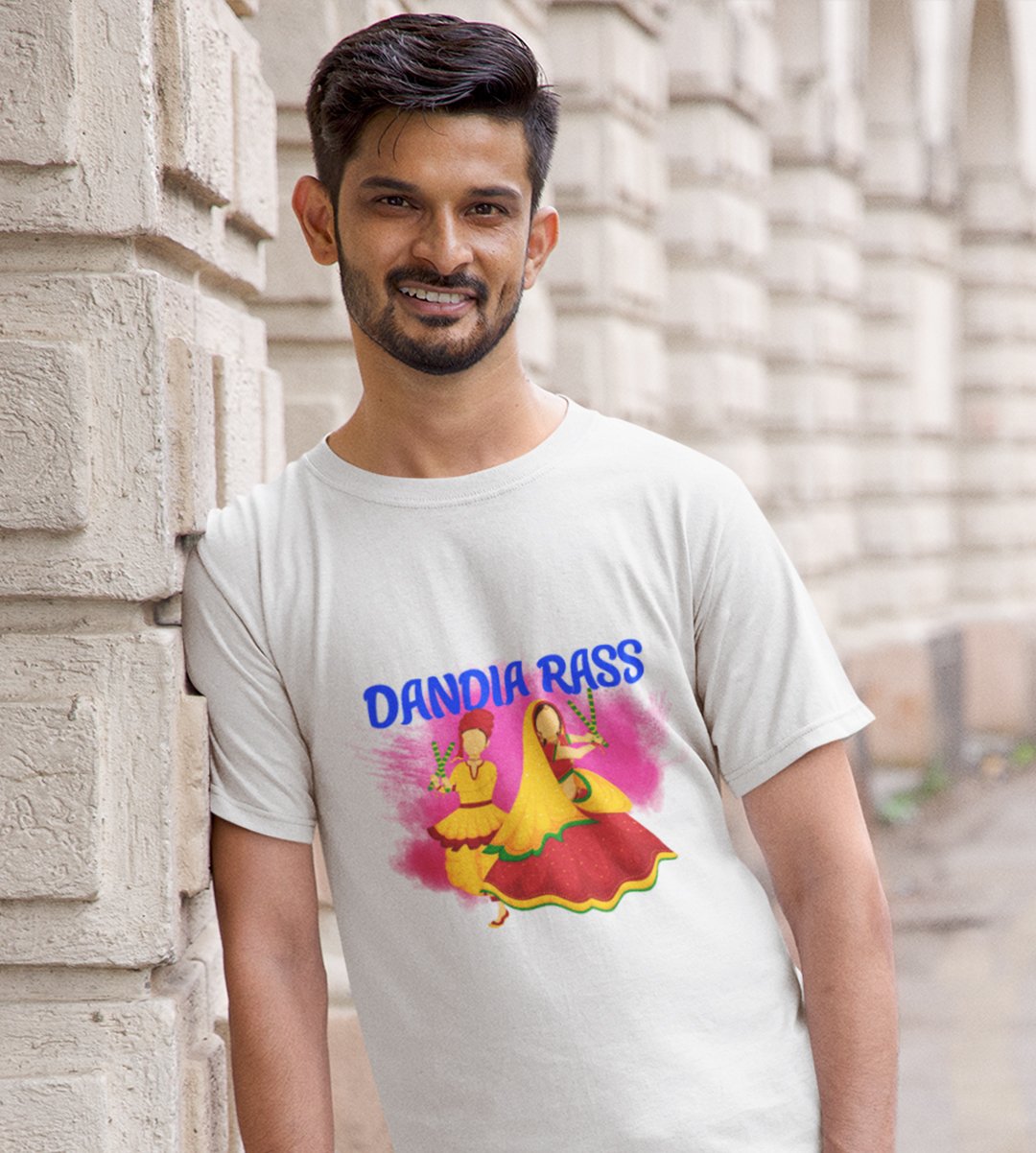 Dandiya rass printed unisex adults round neck cotton half-sleeve white tshirt specially for Navratri festival/ Durga puja